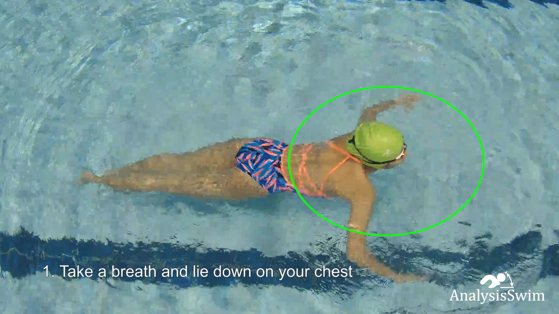 1. Take a breath and lie down on your chest