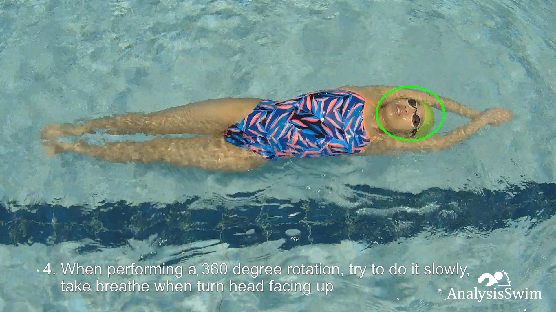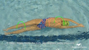 The main idea of the drill “360 Roll” is to improve rotation and control of the body. Arms and legs connection occurs using the core, connection can help to keep rhythm while swimming.