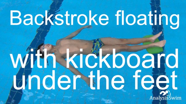 A backstroke floating drill using a kickboard placed under your feet. This drill is commonly used in swimming training to help swimmers improve their body position.