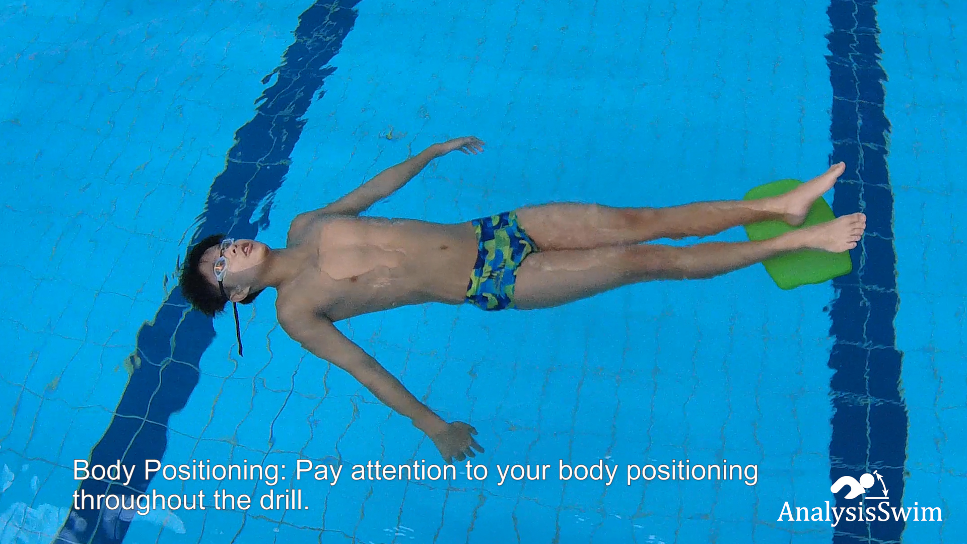 Pay attention to your body positioning throughout the drill. Your head should be in a neutral position, with your ears submerged but your face out of the water. Your hips should be near the surface, and your body should remain as flat and streamlined as possible.