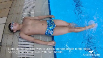Backstroke kick while body rested on the poolside legs in the water
