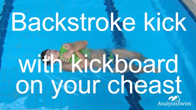 The backstroke kick with a kickboard placed on your chest is a swimming drill that helps swimmers improve their backstroke technique, body position, and kicking strength.