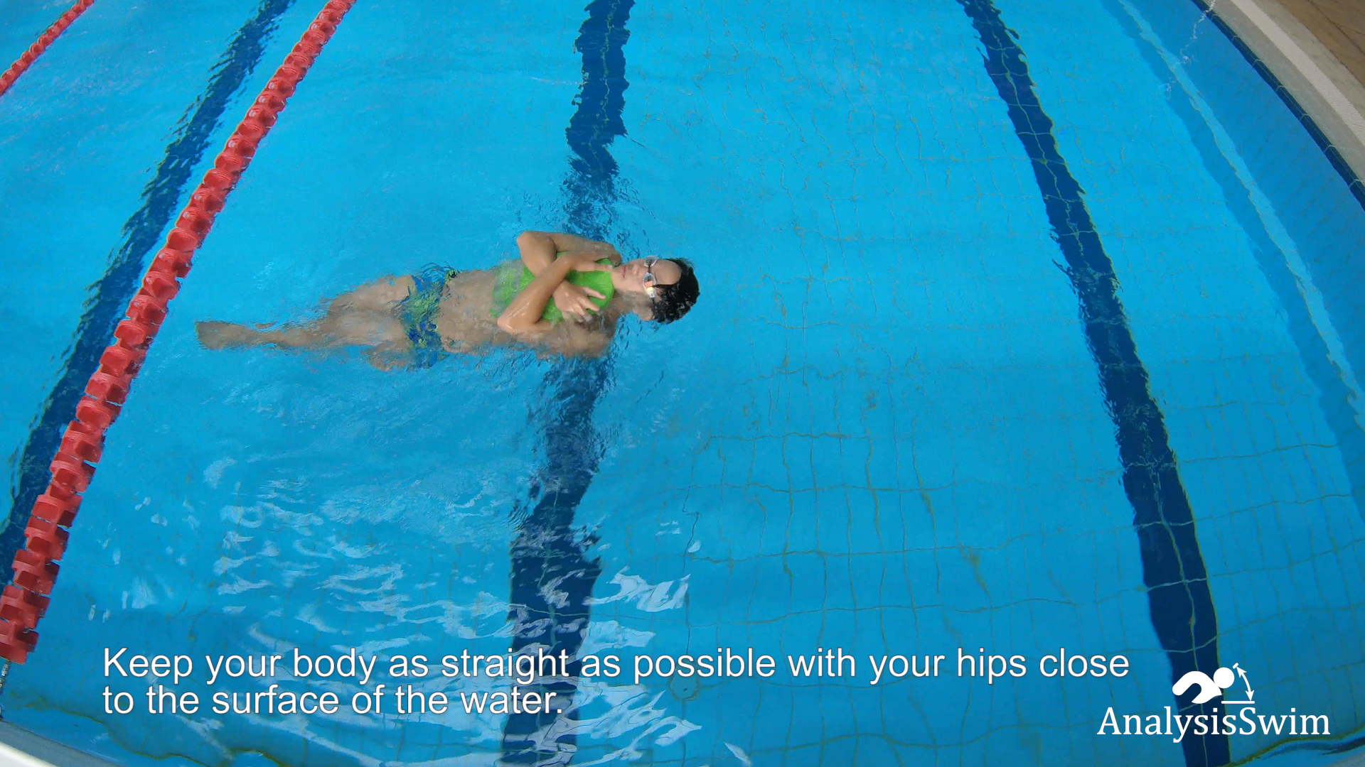 Keep your body as straight as possible with your hips close to the surface of the water. Engage your core muscles to maintain stability.