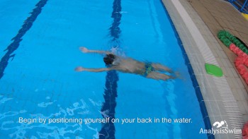 Begin by positioning yourself on your back in the water. Your body should be horizontal, with your face up and your arms extended above your head.