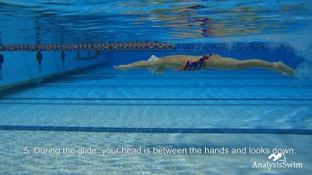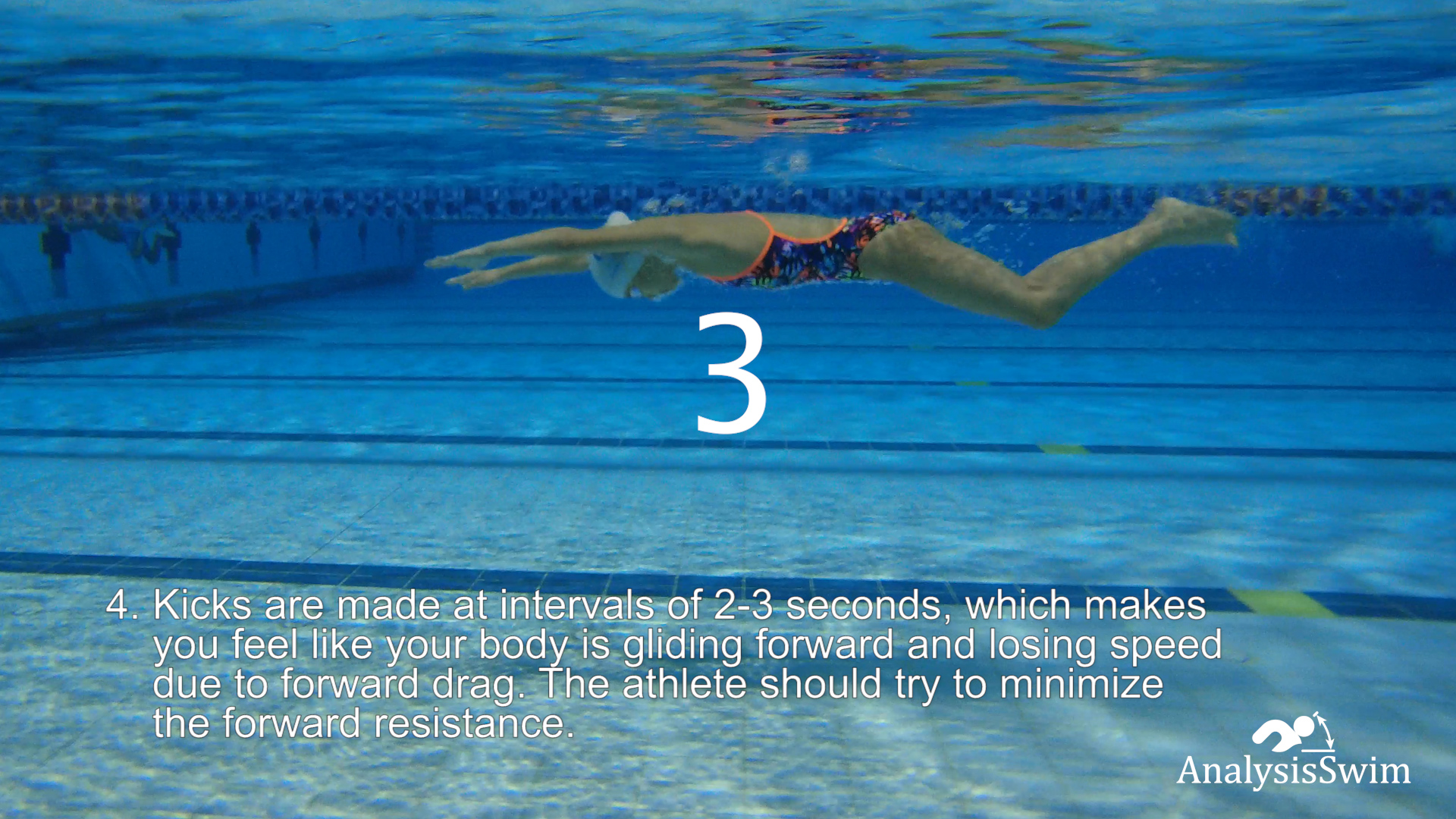 4.Kicks are made at intervals of 2-3 seconds, which makes you feel like your body is gliding forward and losing speed due to forward drag. The athlete should try to minimize the forward resistance.