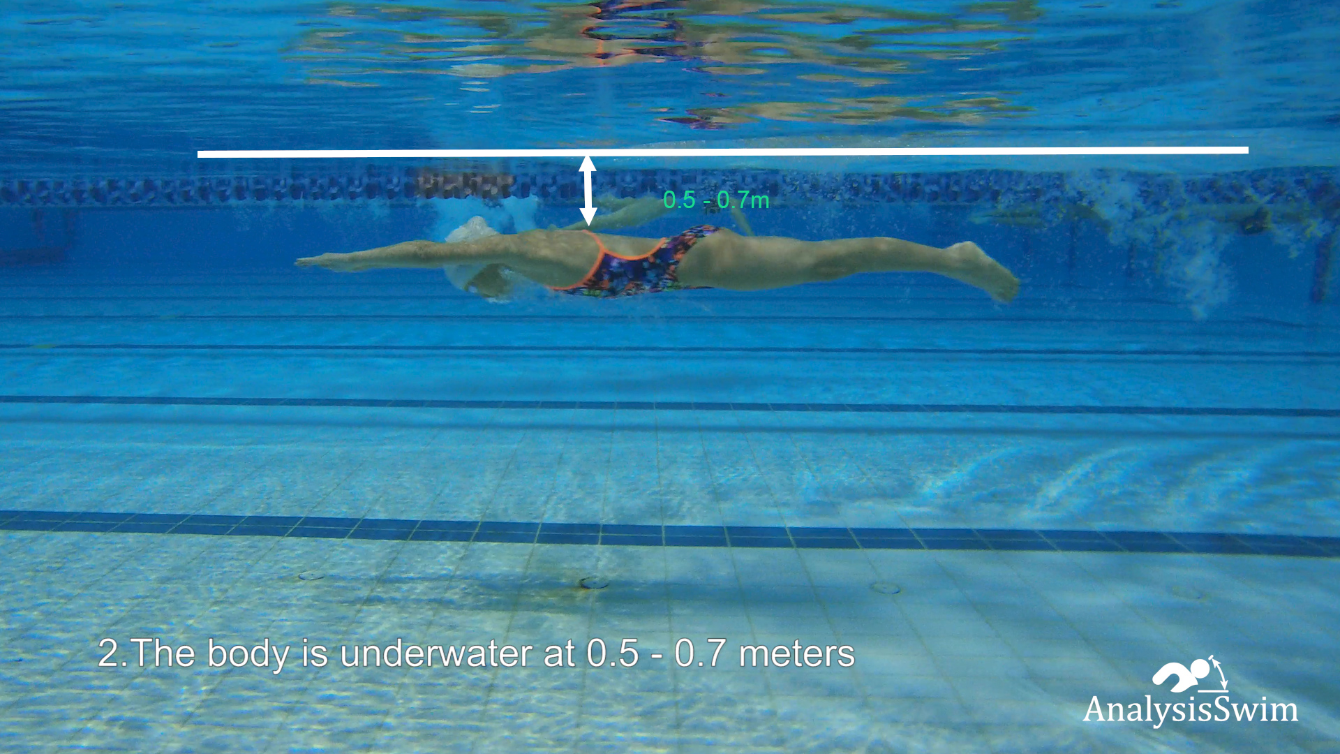 2.The body is underwater at 0.5 - 0.7 meters, during second kick.