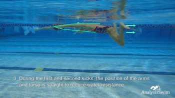 3.During the first and second kicks, the position of the arms and torso is straight to reduce water resistance.