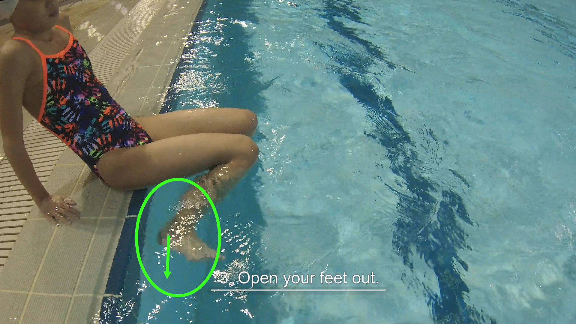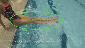 Sit on the edge of the pool with your legs in the water. Make sure you’re sitting comfortably with your back straight and hands supporting you on either side.