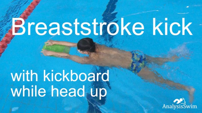 Breaststroke kick with a kickboard while keeping your head up is a great drill for improving your breaststroke technique, especially for beginners or those working on their body position and kick timing.