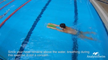 Since your head remains above the water, breathing during this exercise is not a concern. However, you can take occasional breaths by turning your head to the side if needed.