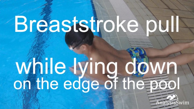 Breaststroke pull while lying down on the edge of the pool