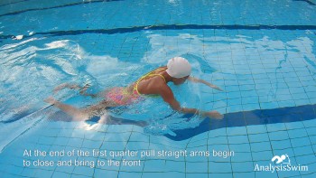 At the end of the first quarter pull straight arms begin to close and bring to the front
