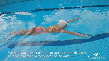 While outsweep your arms keep your palms at 45 degree or more in relation to the surface of the water