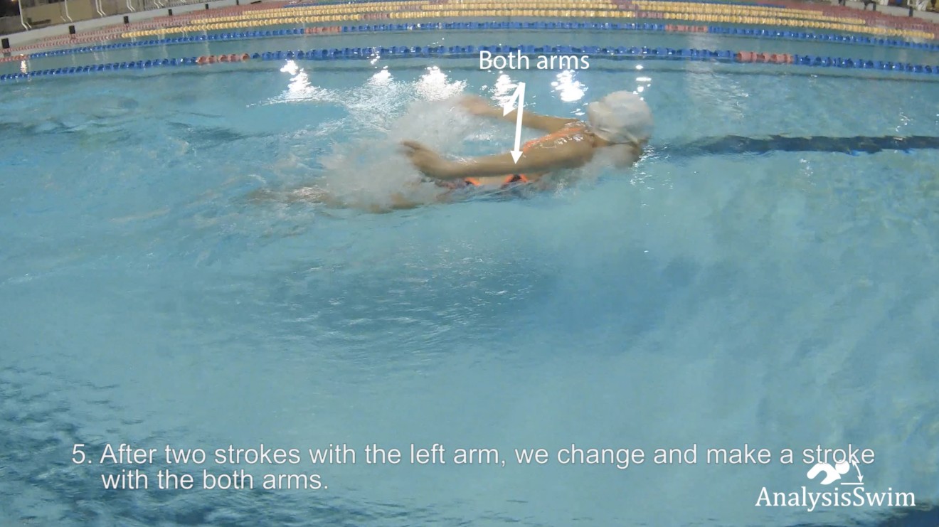 5. After two strokes with the left arm, we change and make a stroke with the both arms.
