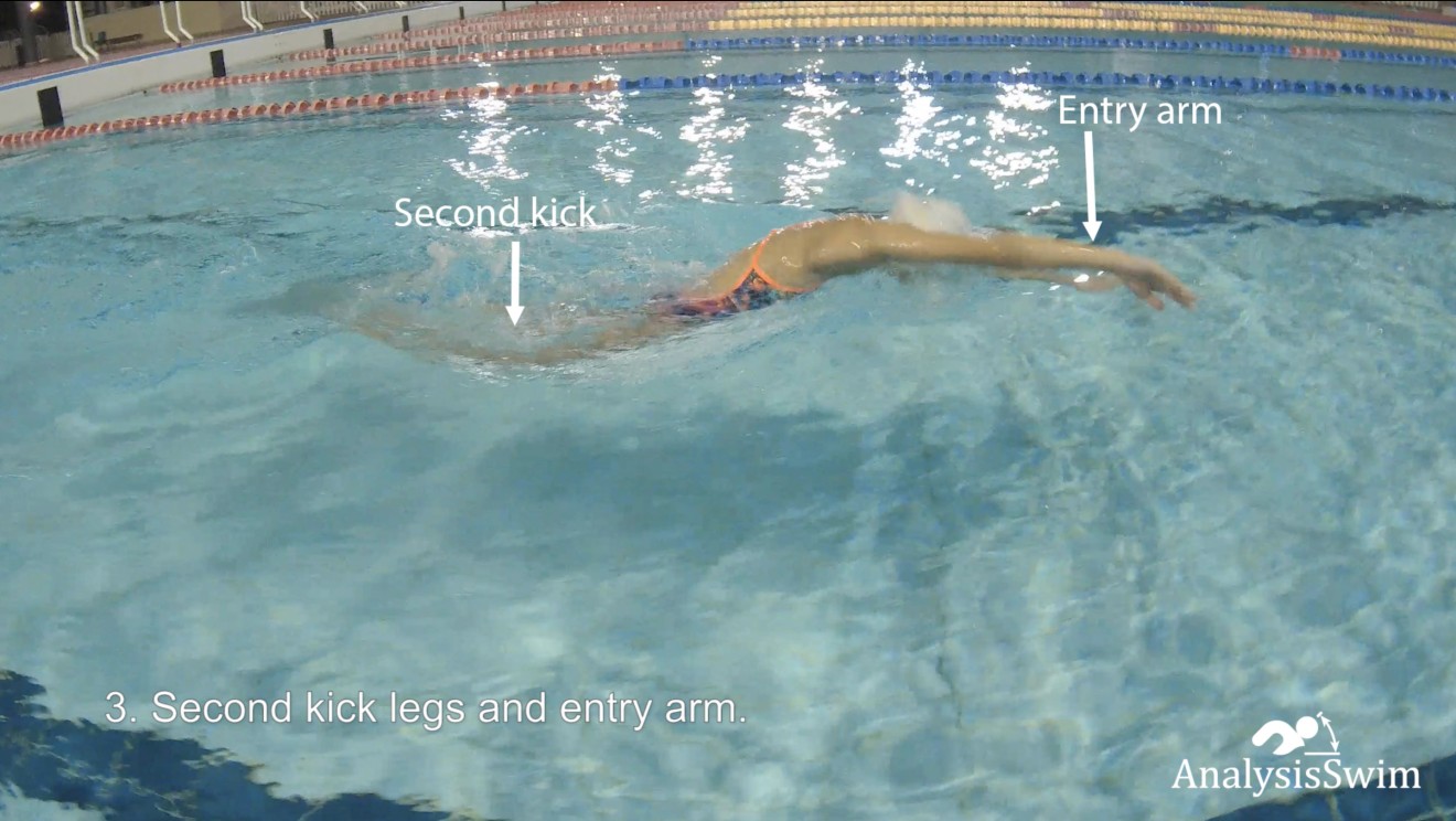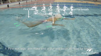 1. First kick legs, arm make end of pull and begin lift head for breath.