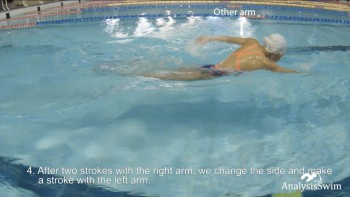 4. After two strokes with the right arm, we change the side and make a stroke with the left arm.