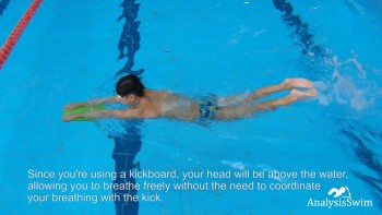 Since you’re using a kickboard, your head will be above the water, allowing you to breathe freely without the need to coordinate your breathing with the kick.