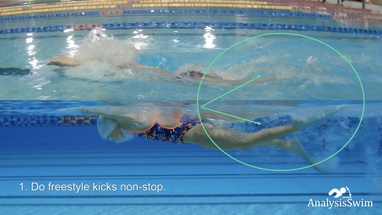 Ensure that your pull and kick are coordinated. The freestyle kick should be continuous and not disrupted by the butterfly pull.
