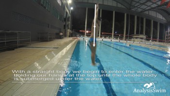 With a straight body we begin to enter the water holding our hands at the top until the whole body is submerged under the water
