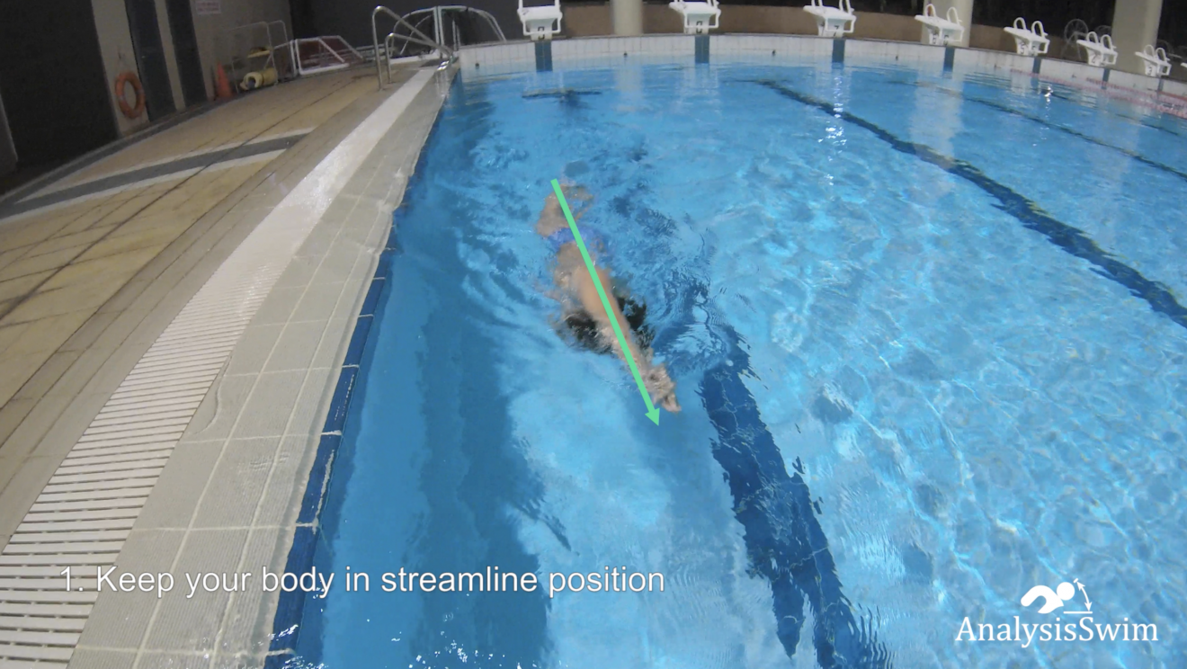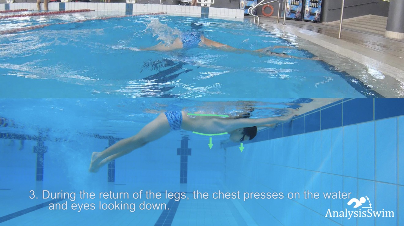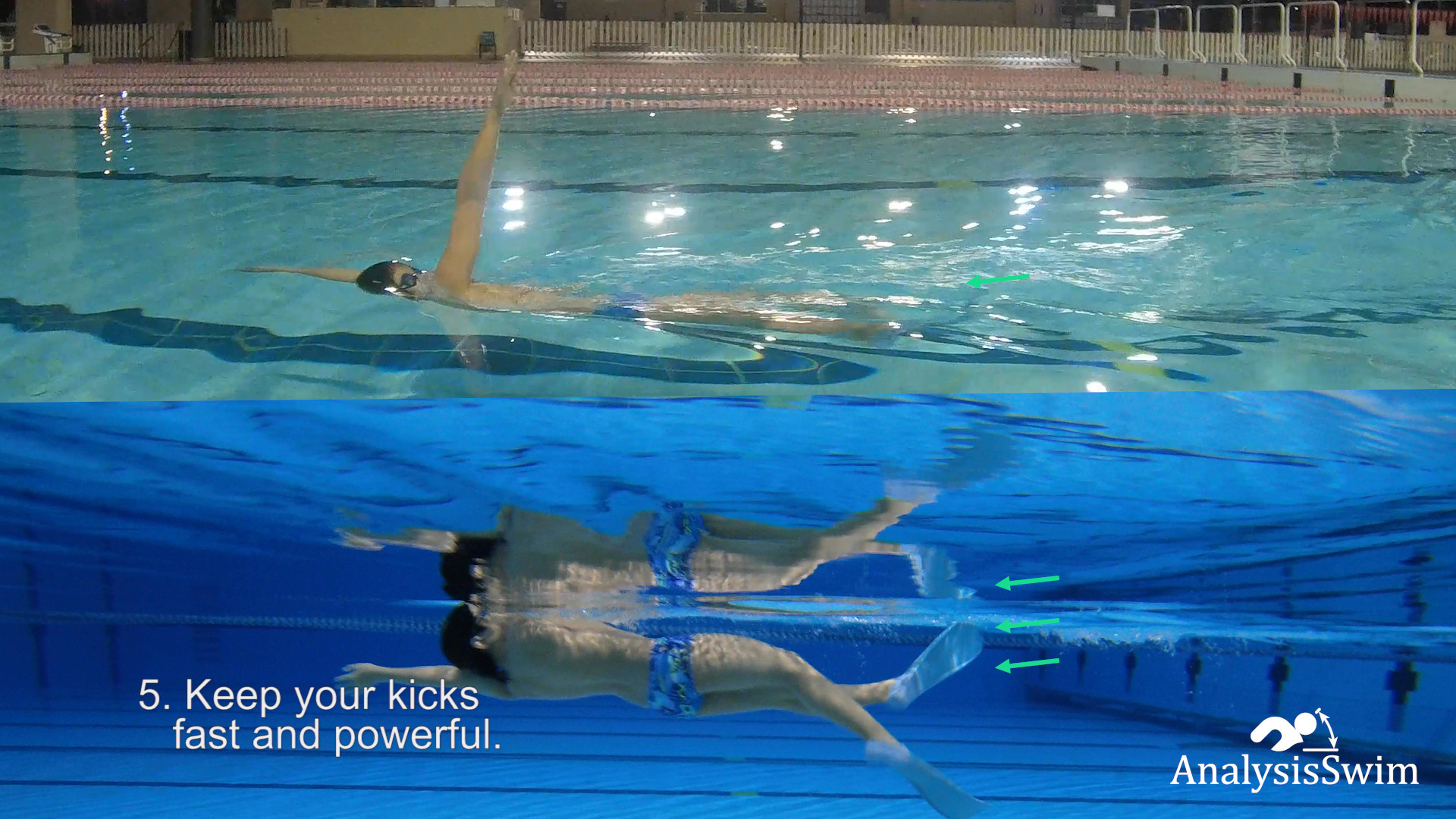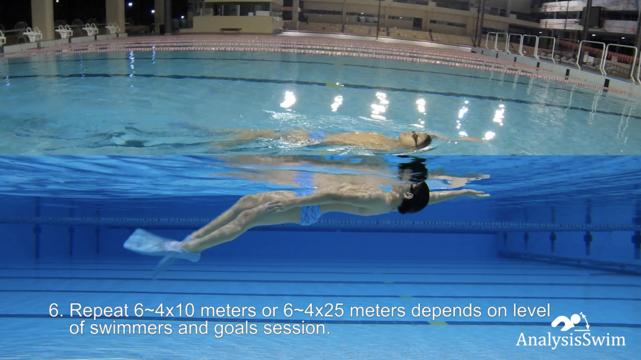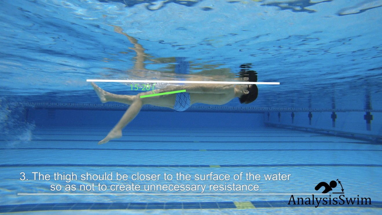 4.Kicks are made at intervals of 2-3 seconds, which makes you feel like your body is gliding forward and losing speed due to forward drag. The athlete should try to minimize the forward resistance.
