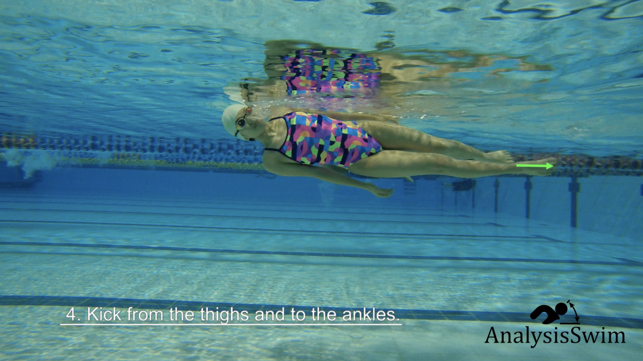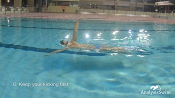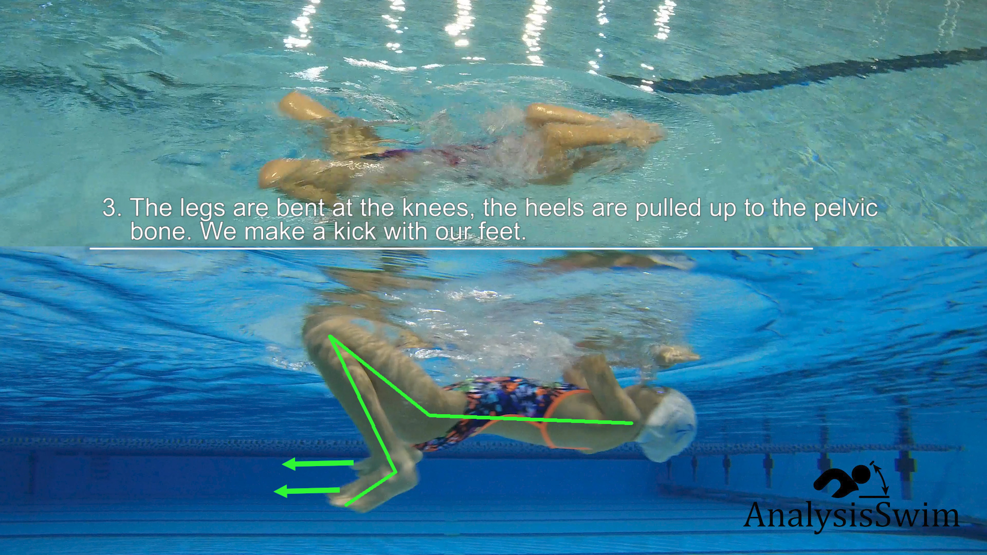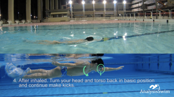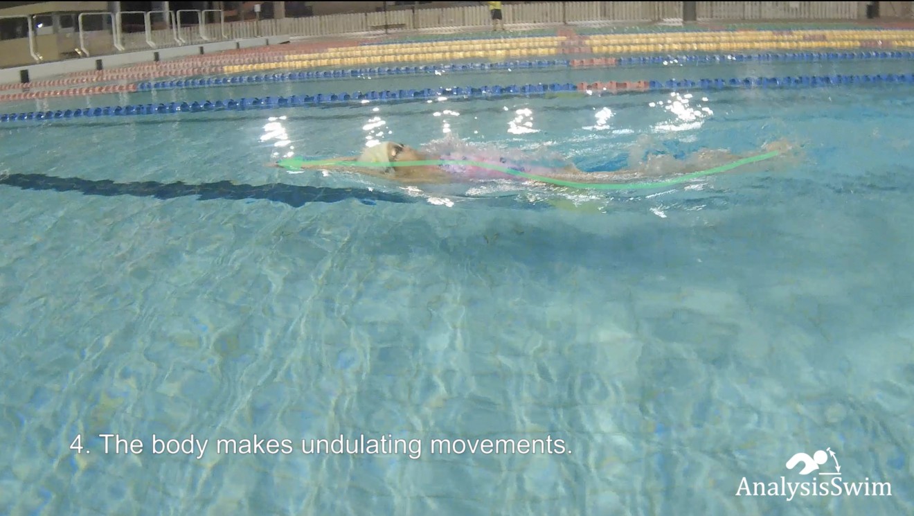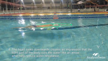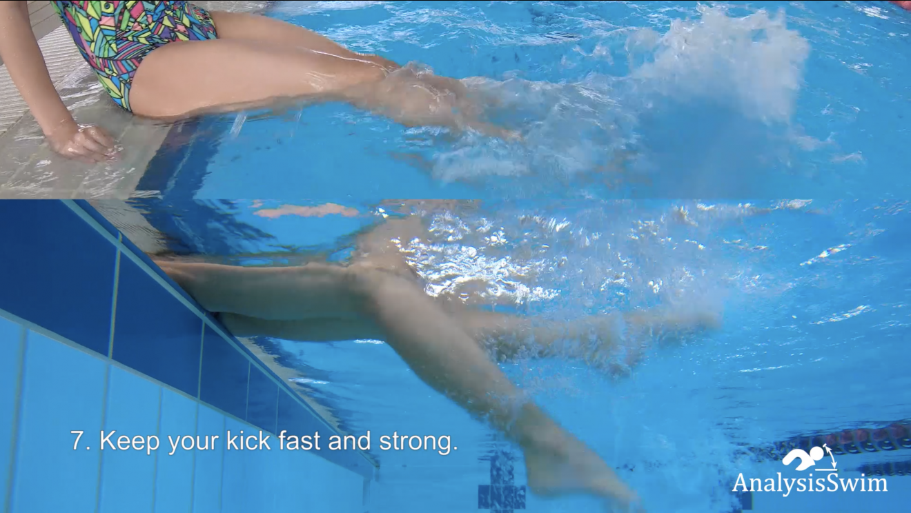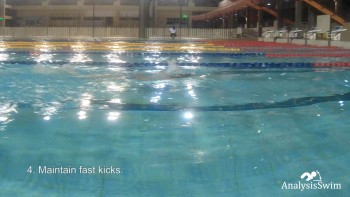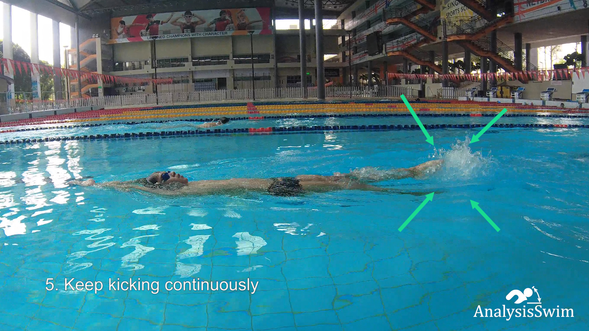 4.Kicks are made at intervals of 2-3 seconds, which makes you feel like your body is gliding forward and losing speed due to forward drag. The athlete should try to minimize the forward resistance.