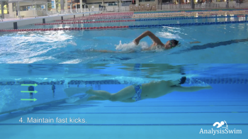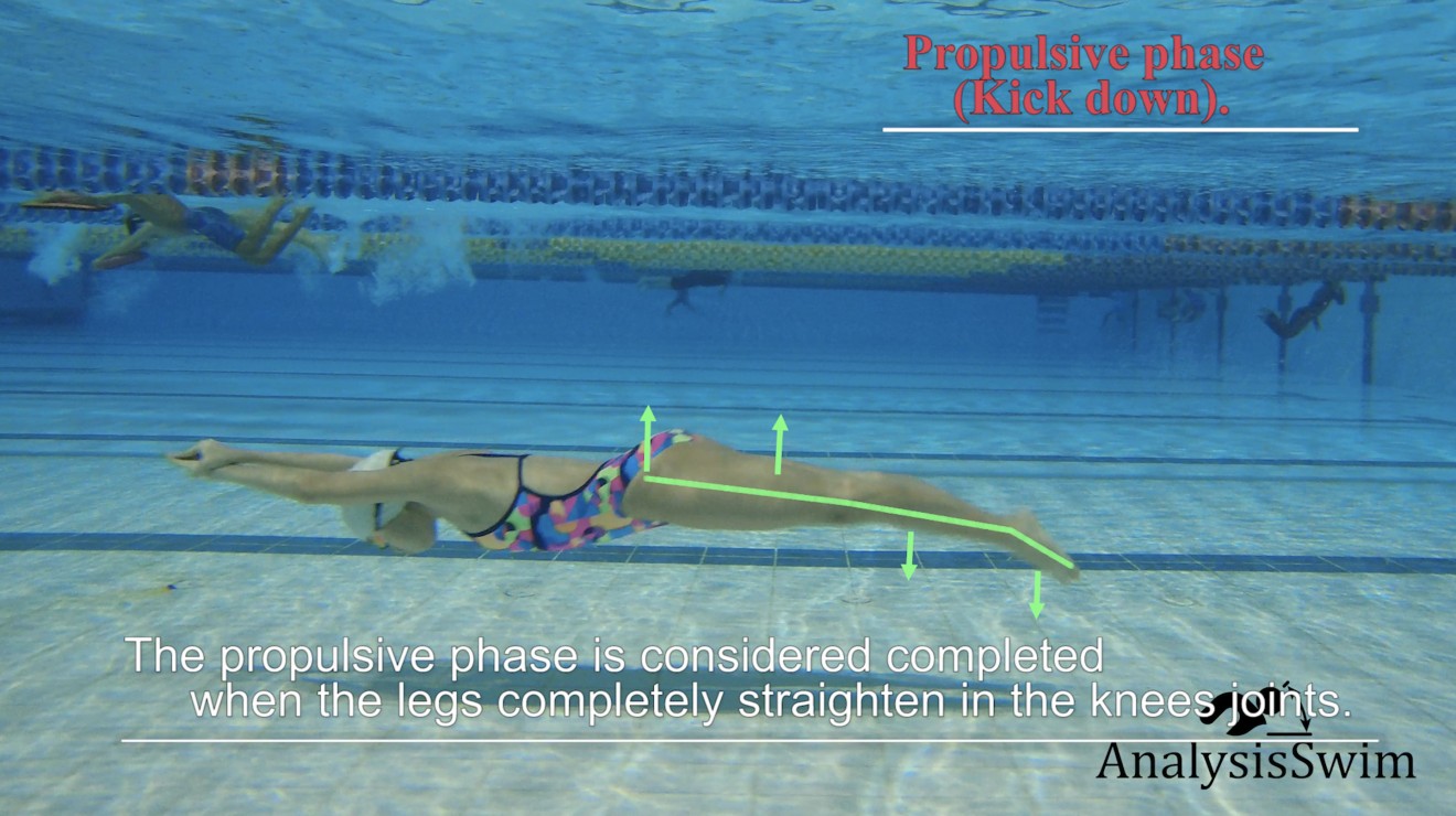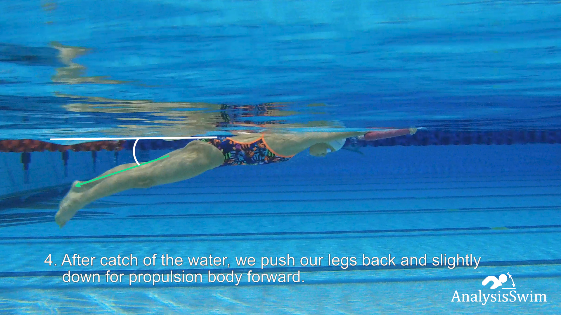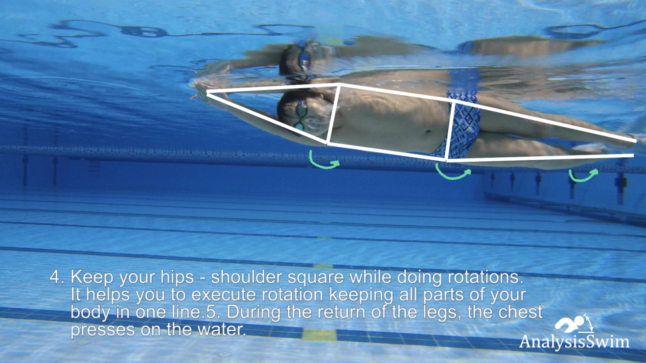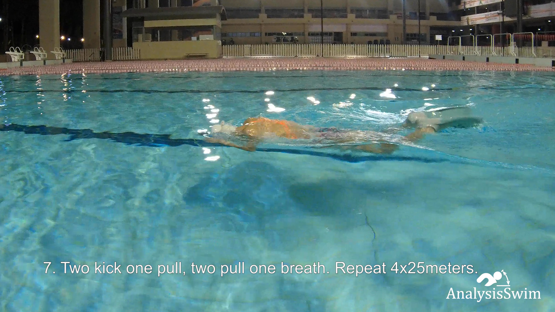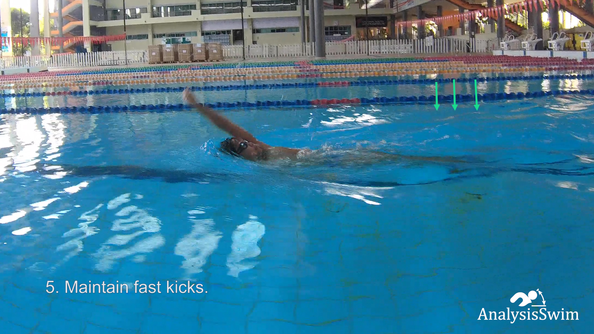 4.Kicks are made at intervals of 2-3 seconds, which makes you feel like your body is gliding forward and losing speed due to forward drag. The athlete should try to minimize the forward resistance.