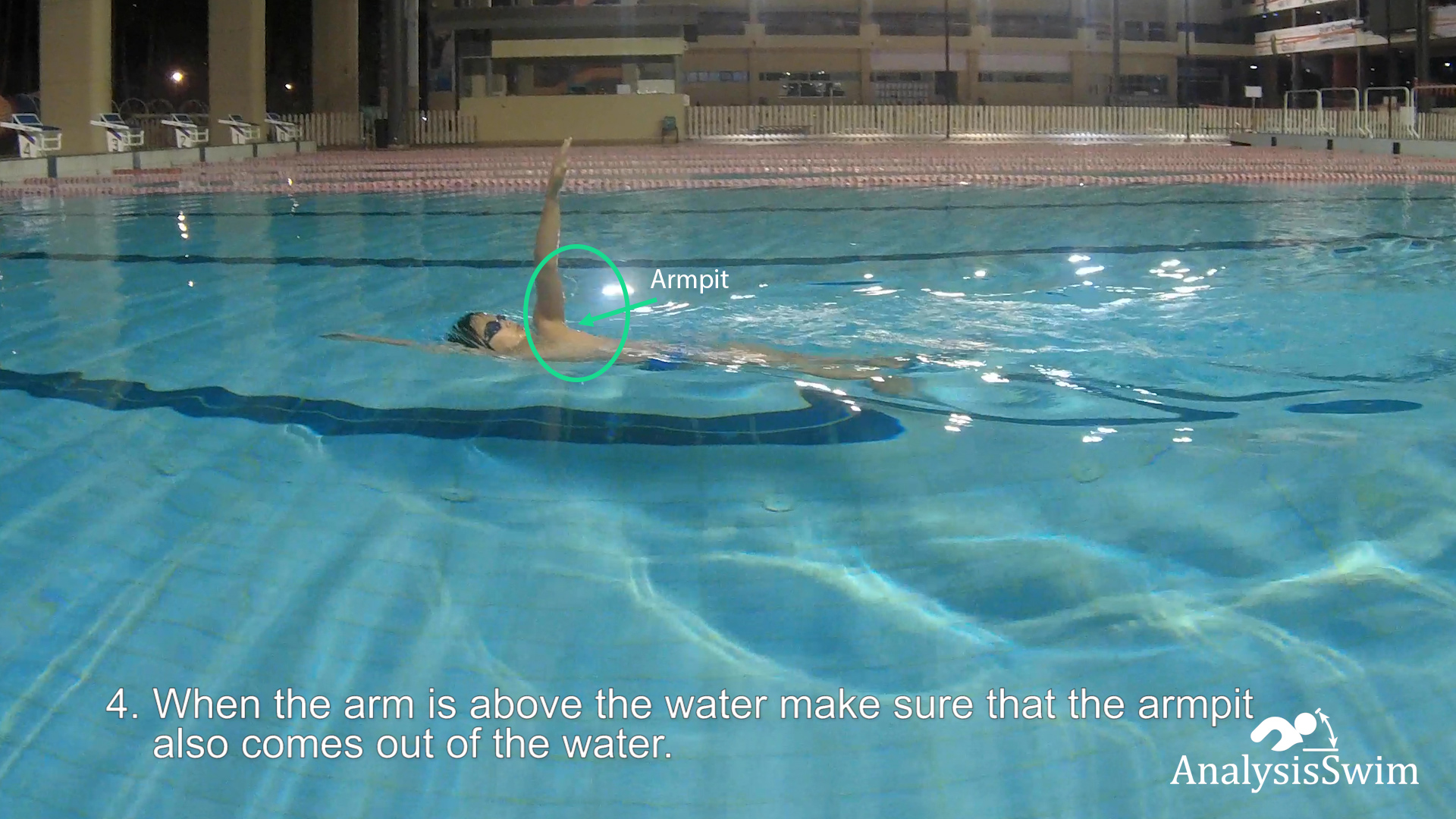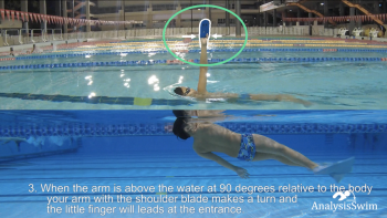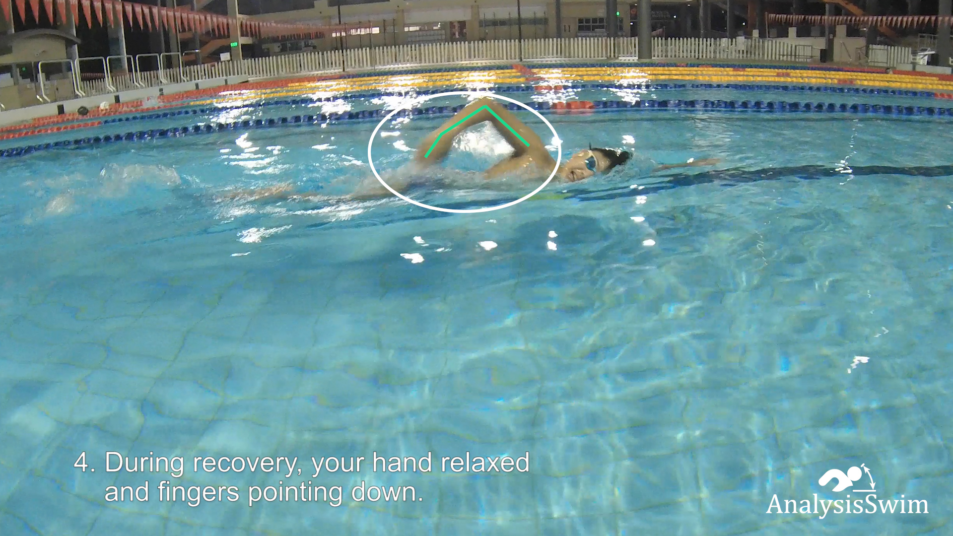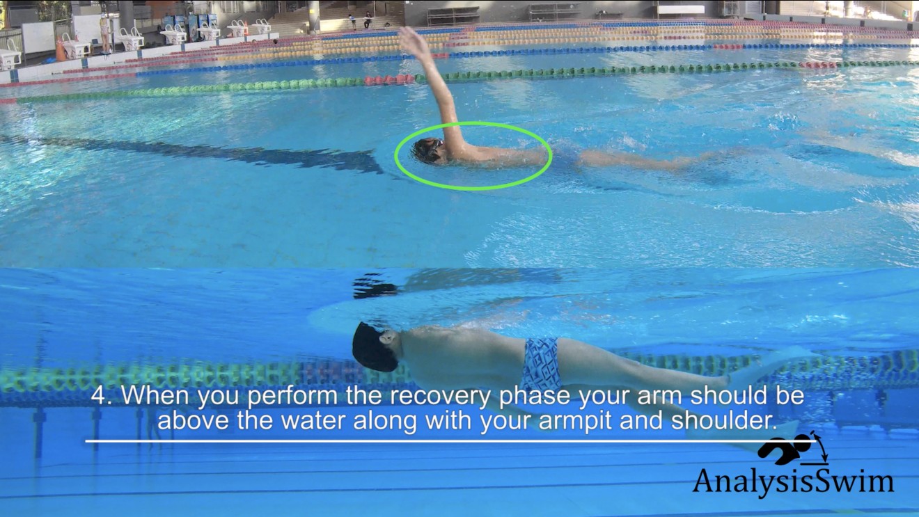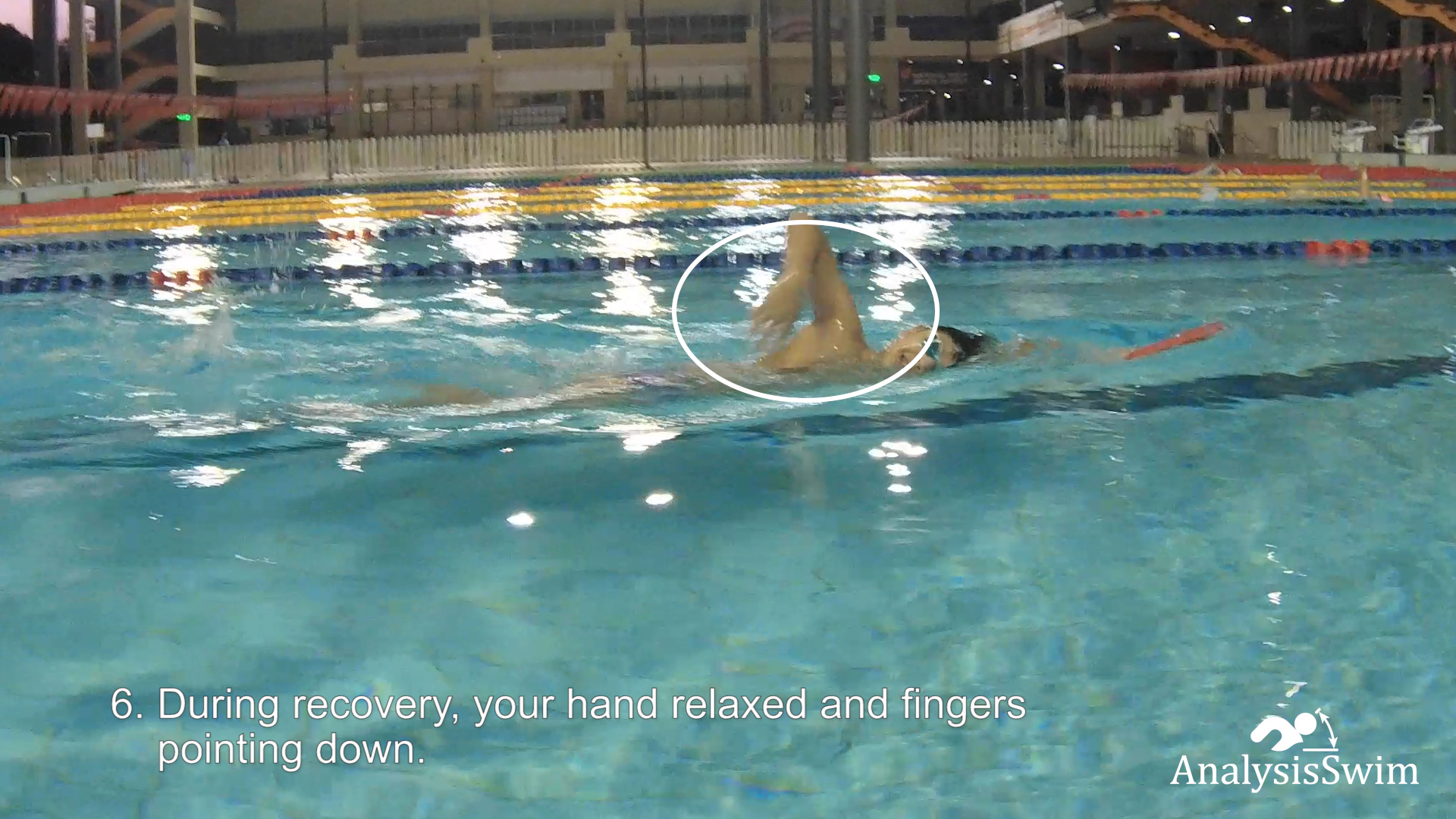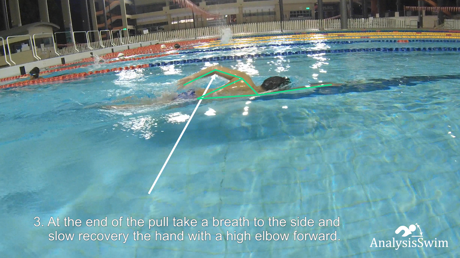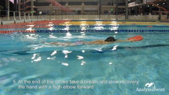 5. At the end of the stroke take a breath and slow recovery the hand with a high elbow forward.