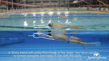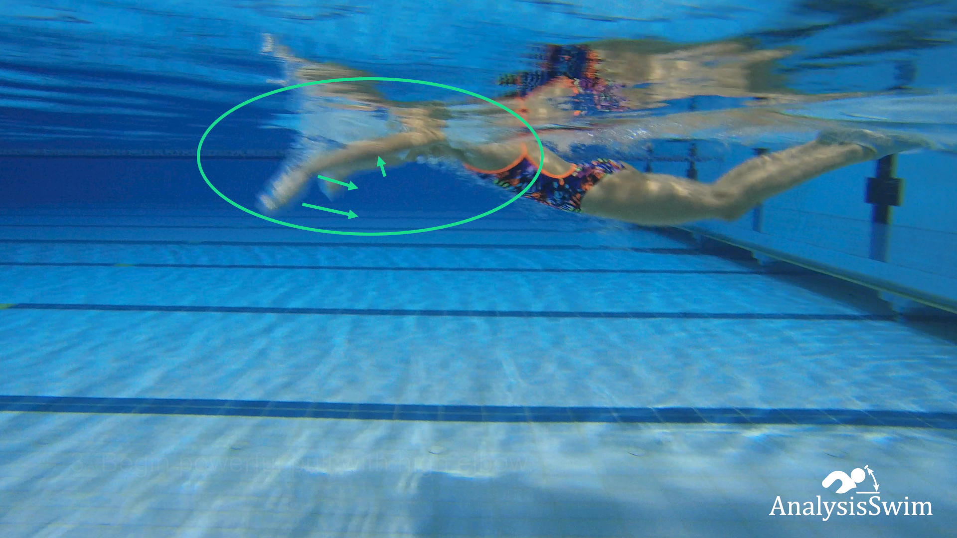 Since the palm support area has decreased, the speed of the stroke under water becomes faster and you can feel the catch up of the hand using the forearm too.