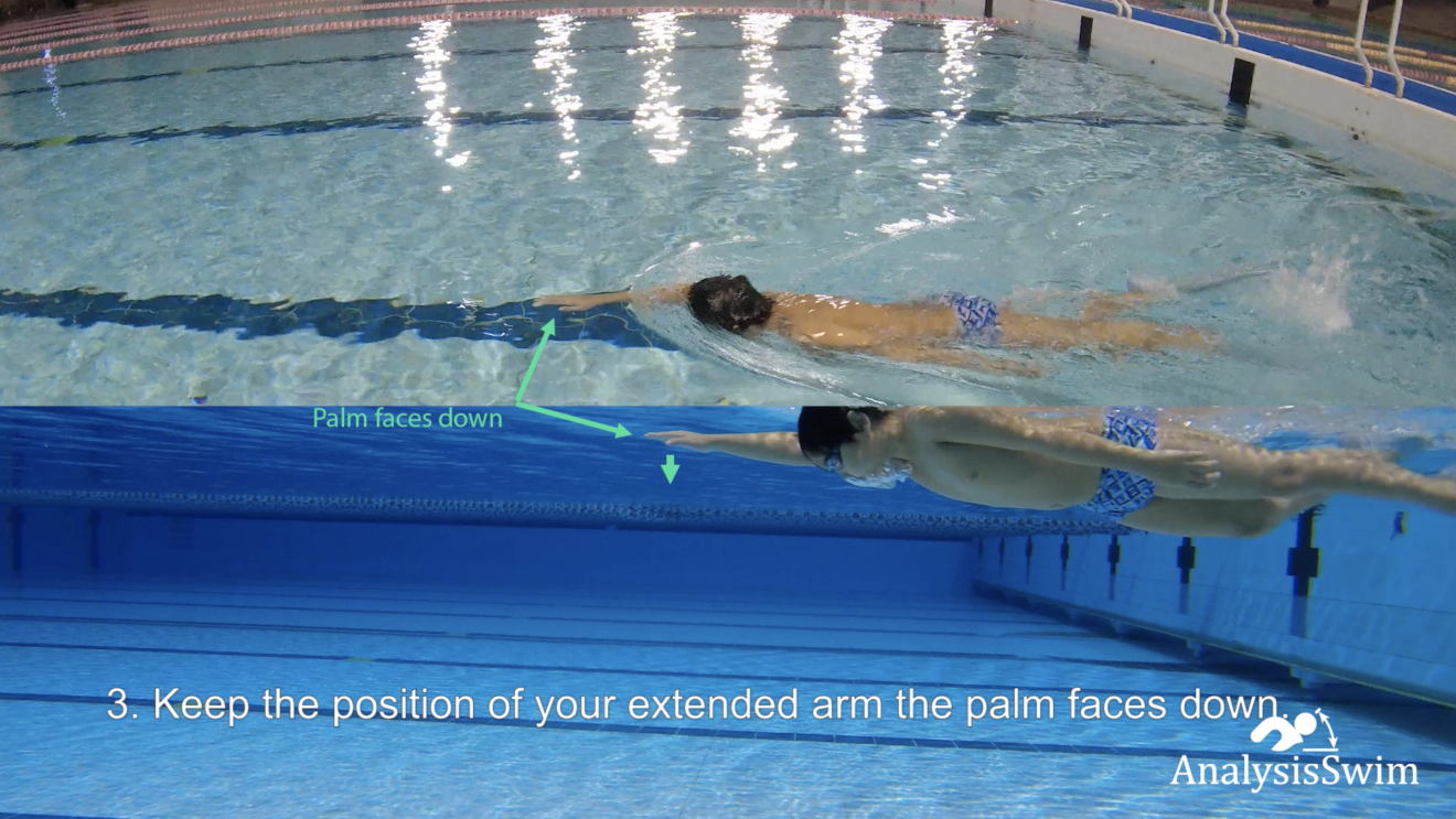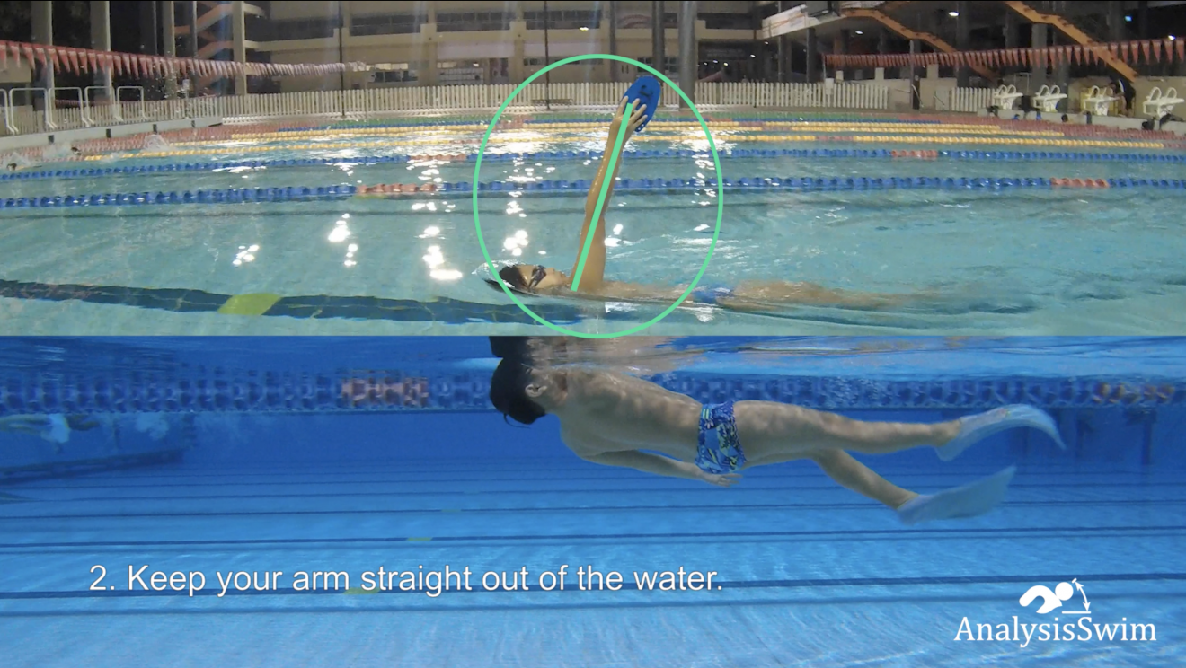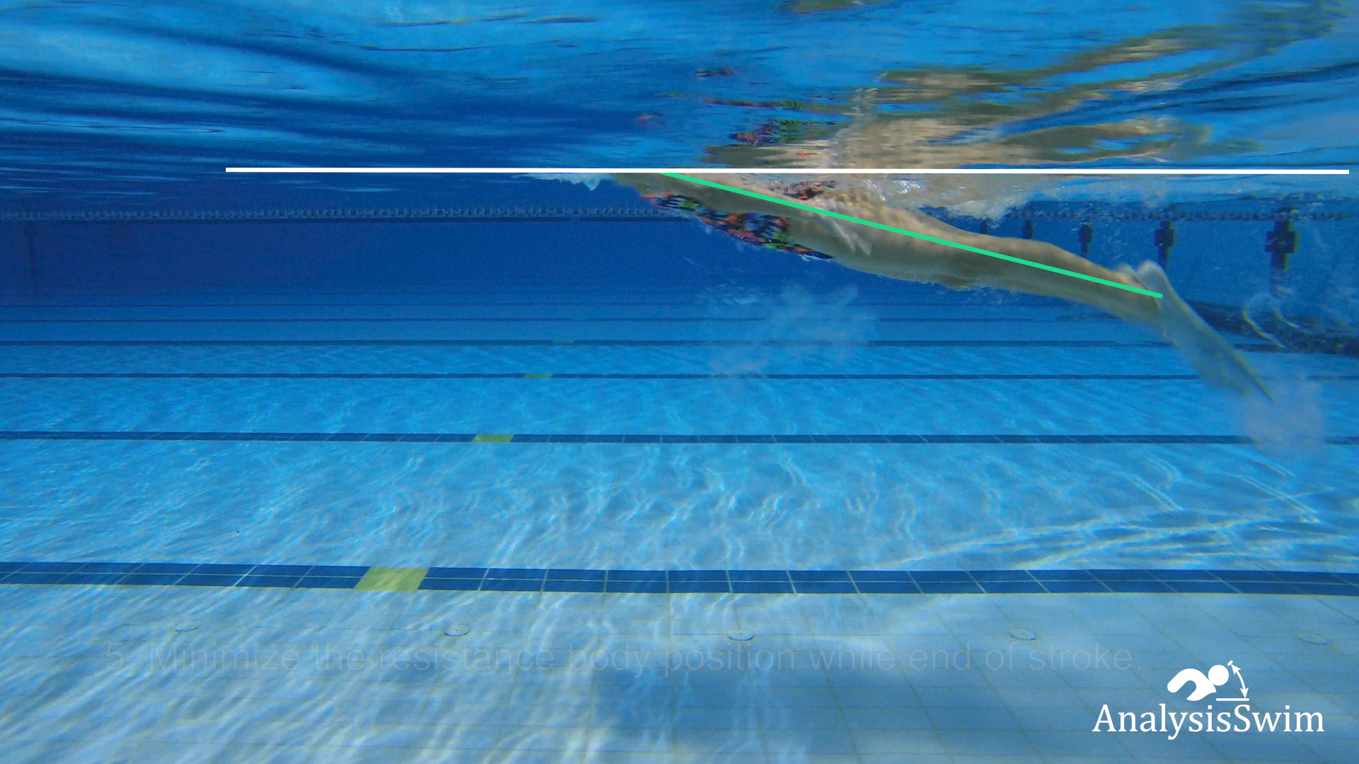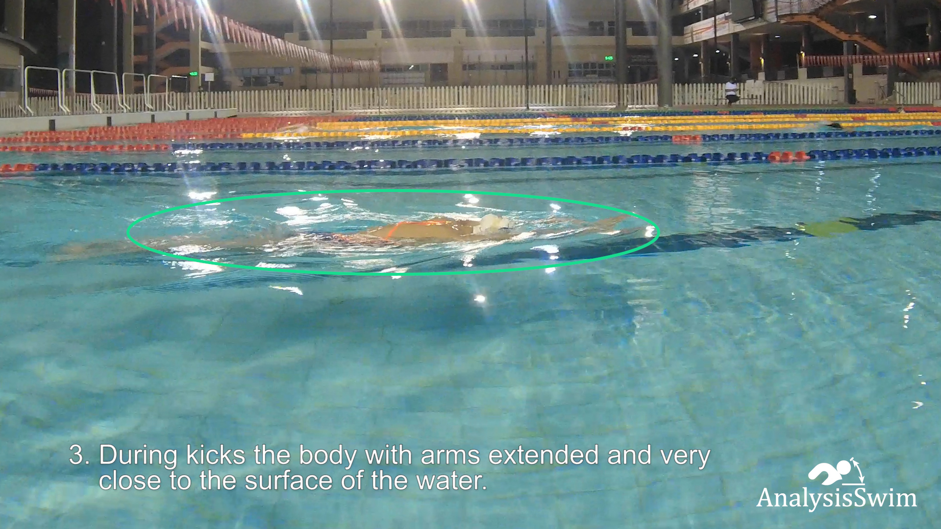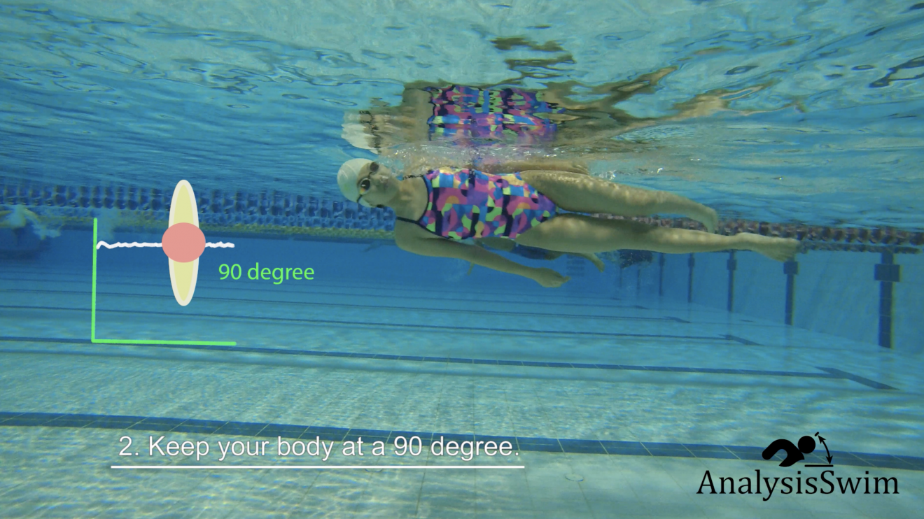3.During the first and second kicks, the position of the arms and torso is straight to reduce water resistance.