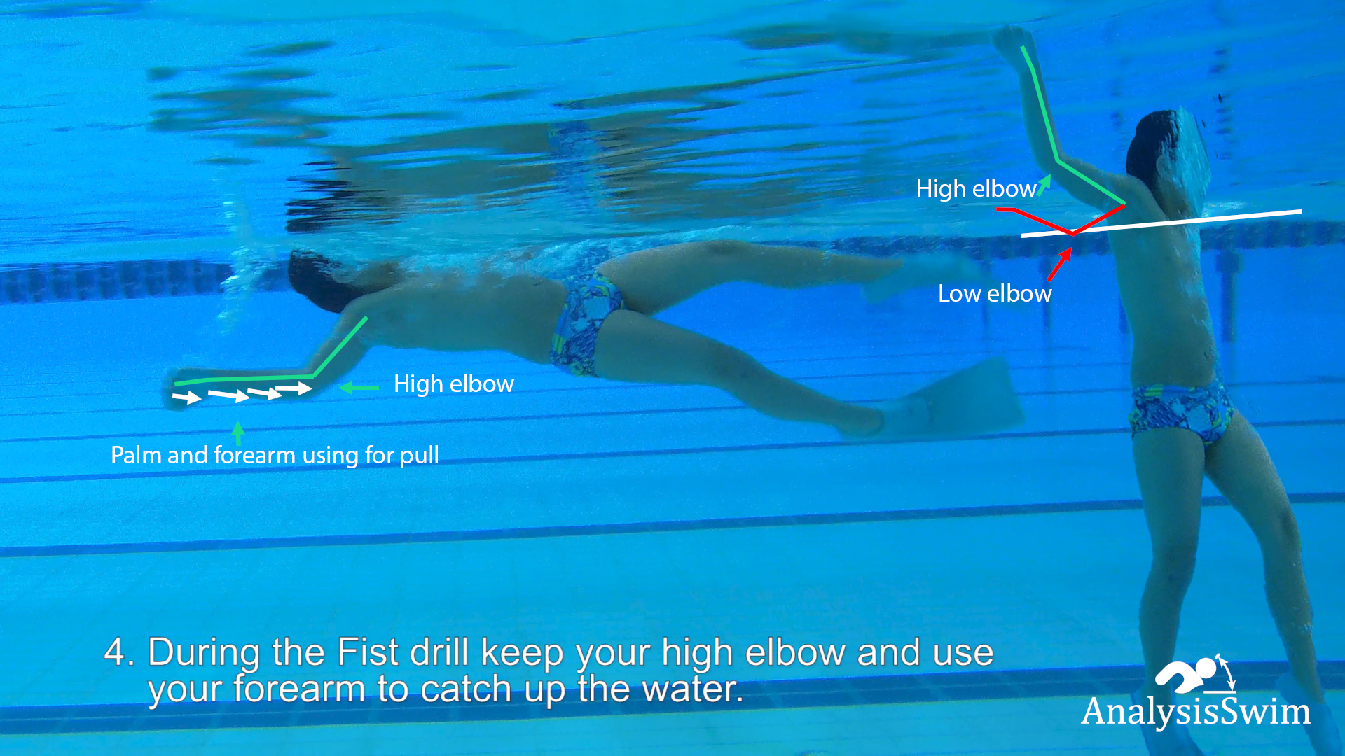 The main idea of the Fist drill is to practice the position of the forearm as it exaggerate the aspect of the pull strokes. The palm is one of the sensitive part of the body.
