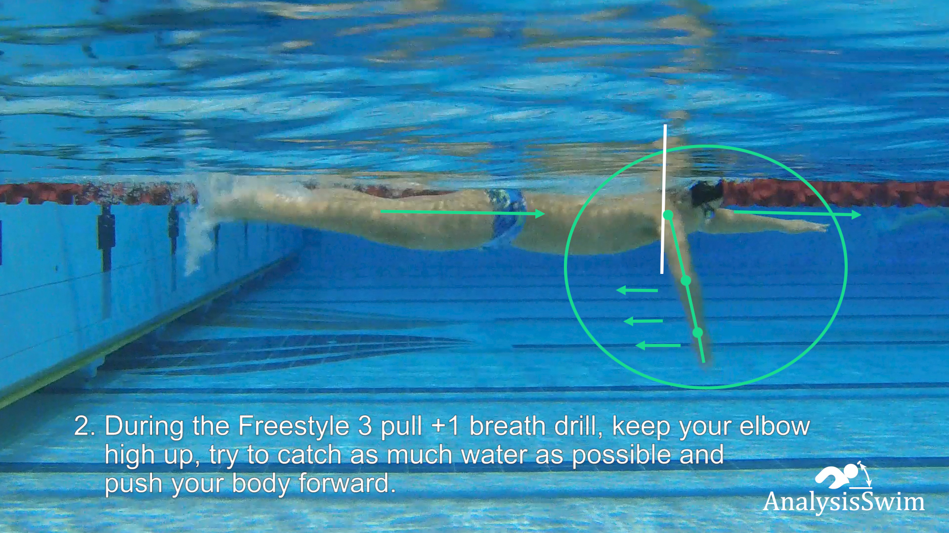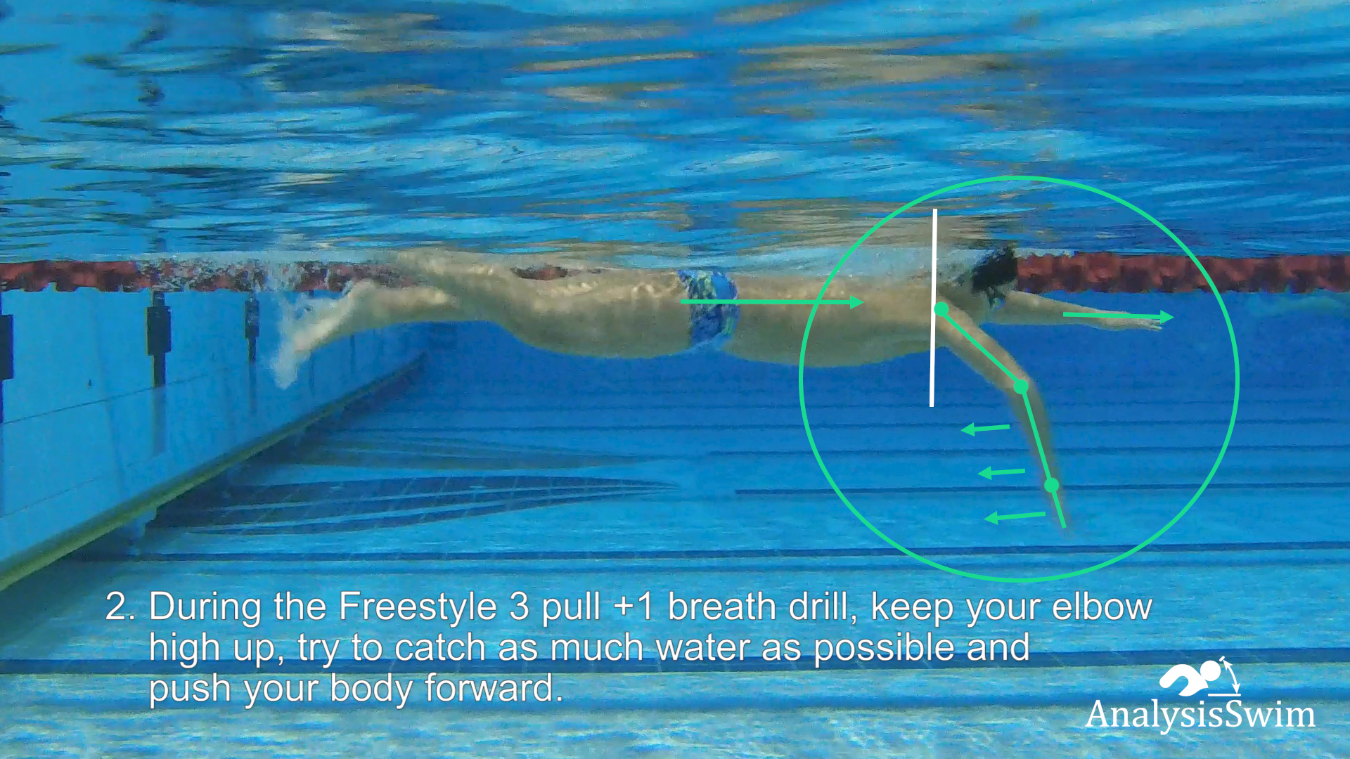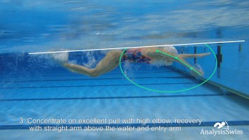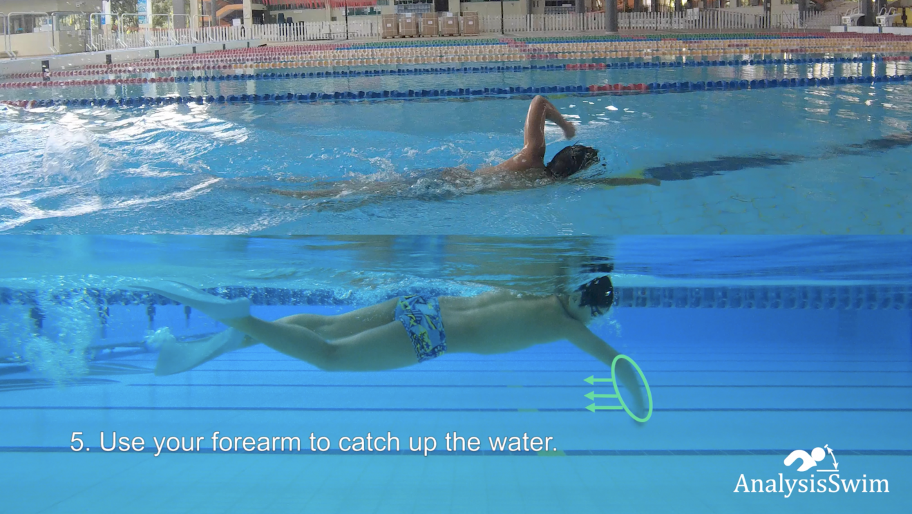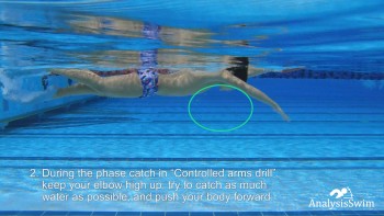 2. During the phase catch in “Controlled arms drill”, keep your elbow high up, try to catch as much water as possible, and push your body forward.