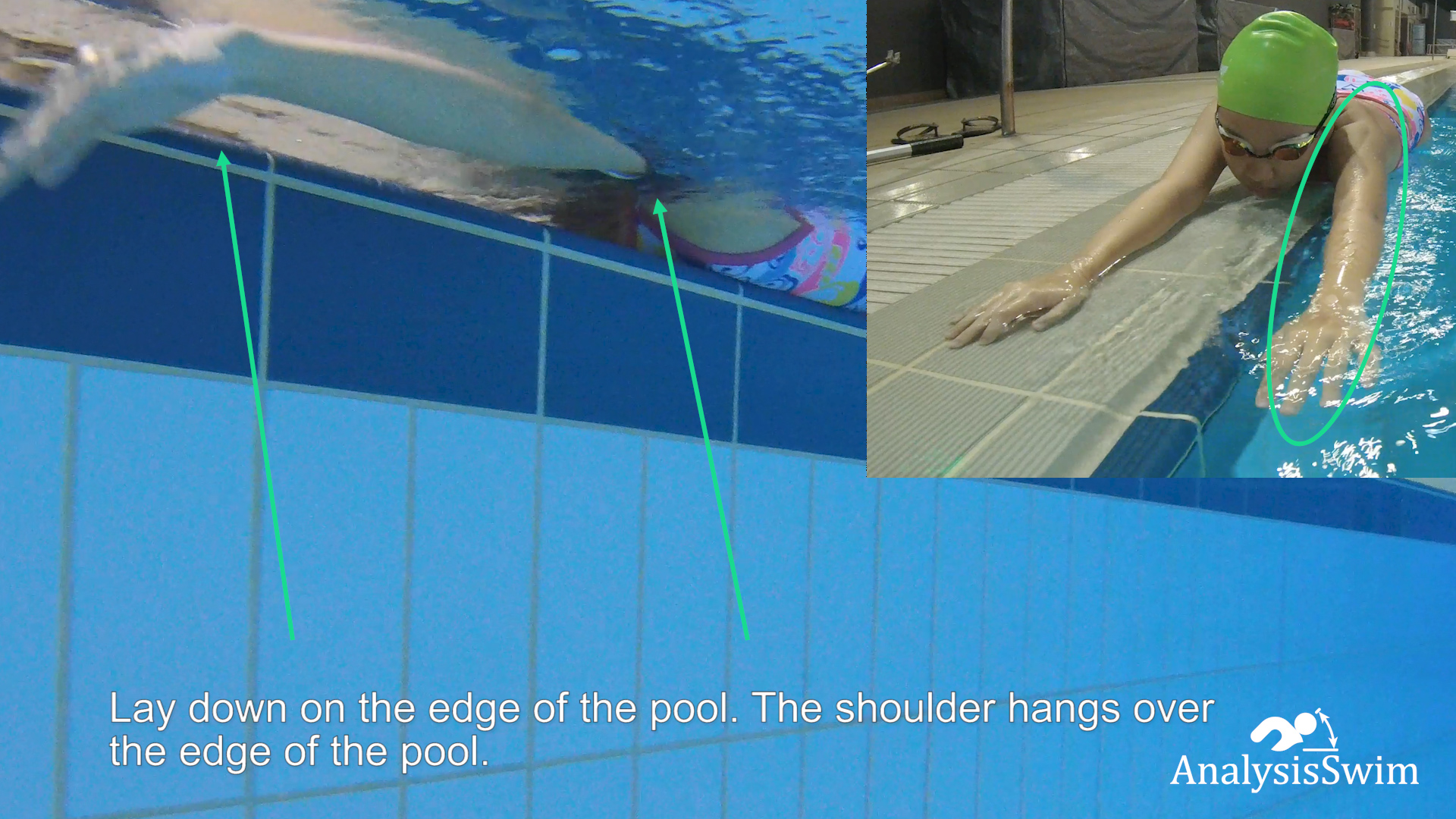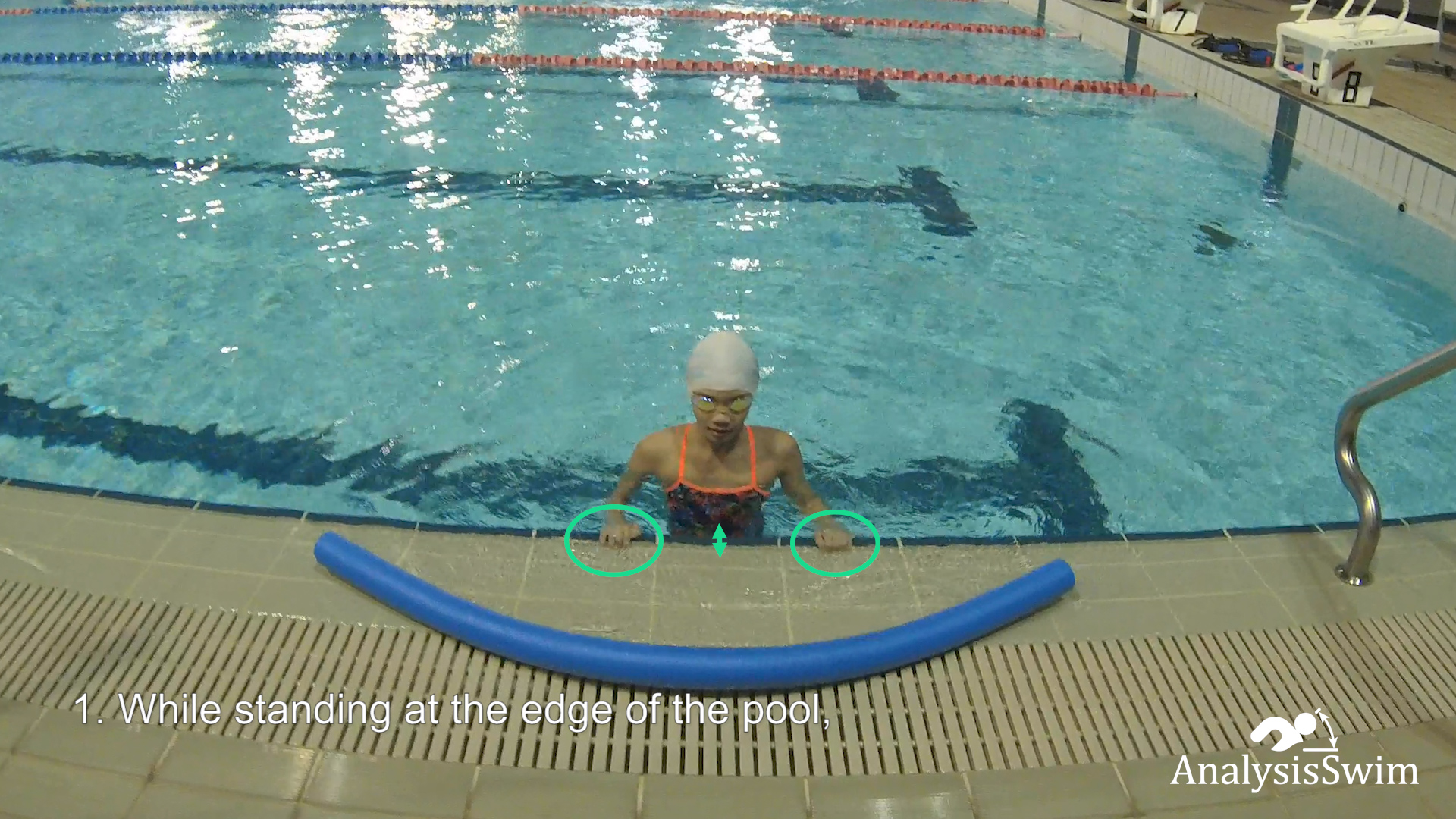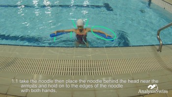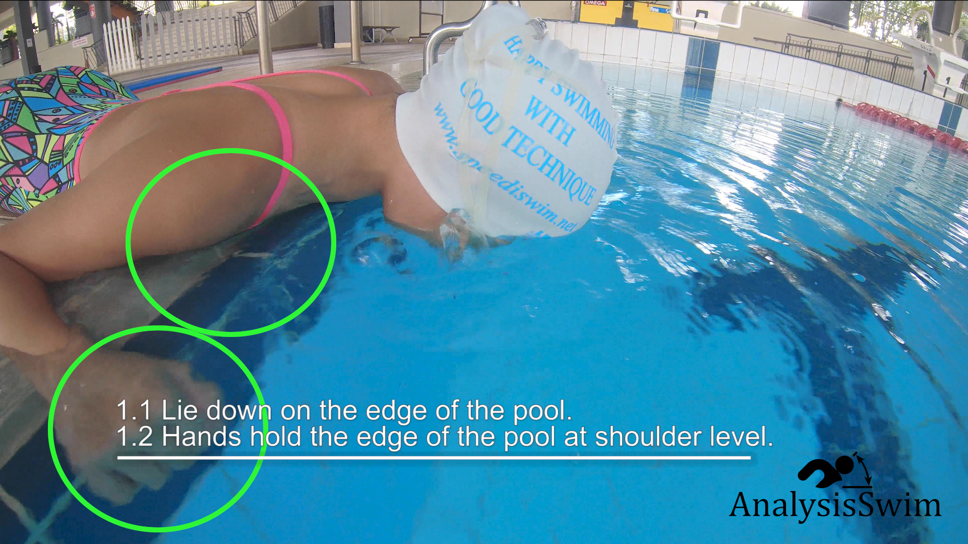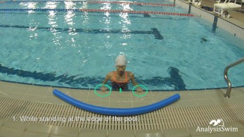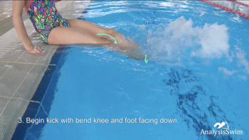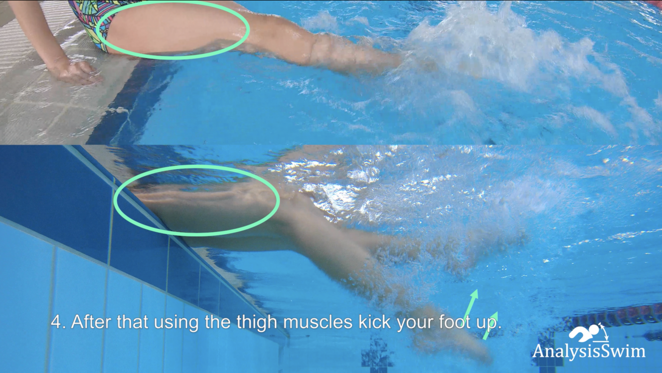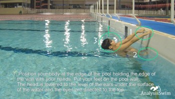 the main idea of the Freestyle kick with arms on the edge of the pool side. Teach your swimmers how to properly use kicks and keep the body in a straight position.