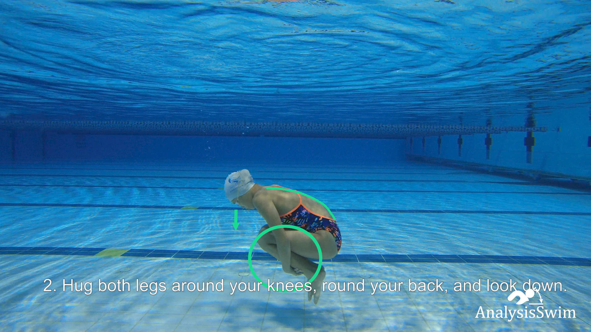 The main idea of the “Forward somersault” is to improve body rotation 360 degrees. A forward somersault in swimming is a maneuver often used in competitive swimming, particularly during freestyle and backstroke turns.