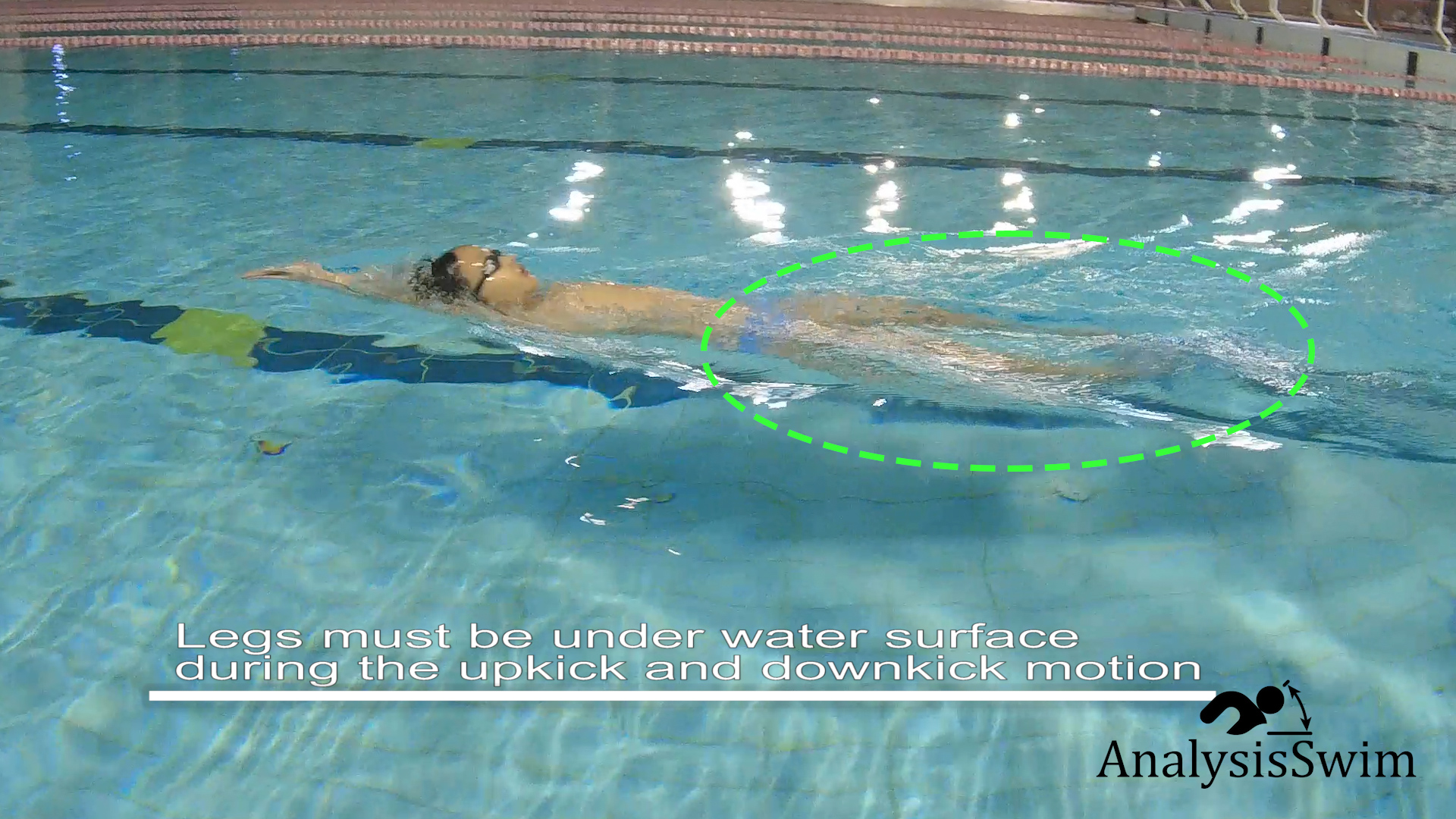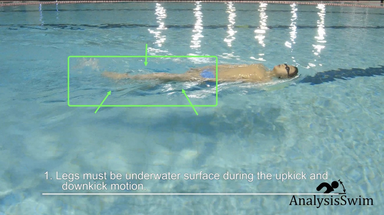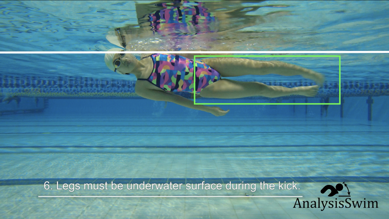 1. Legs can slightly break the water surface during the end of the upkick motion.