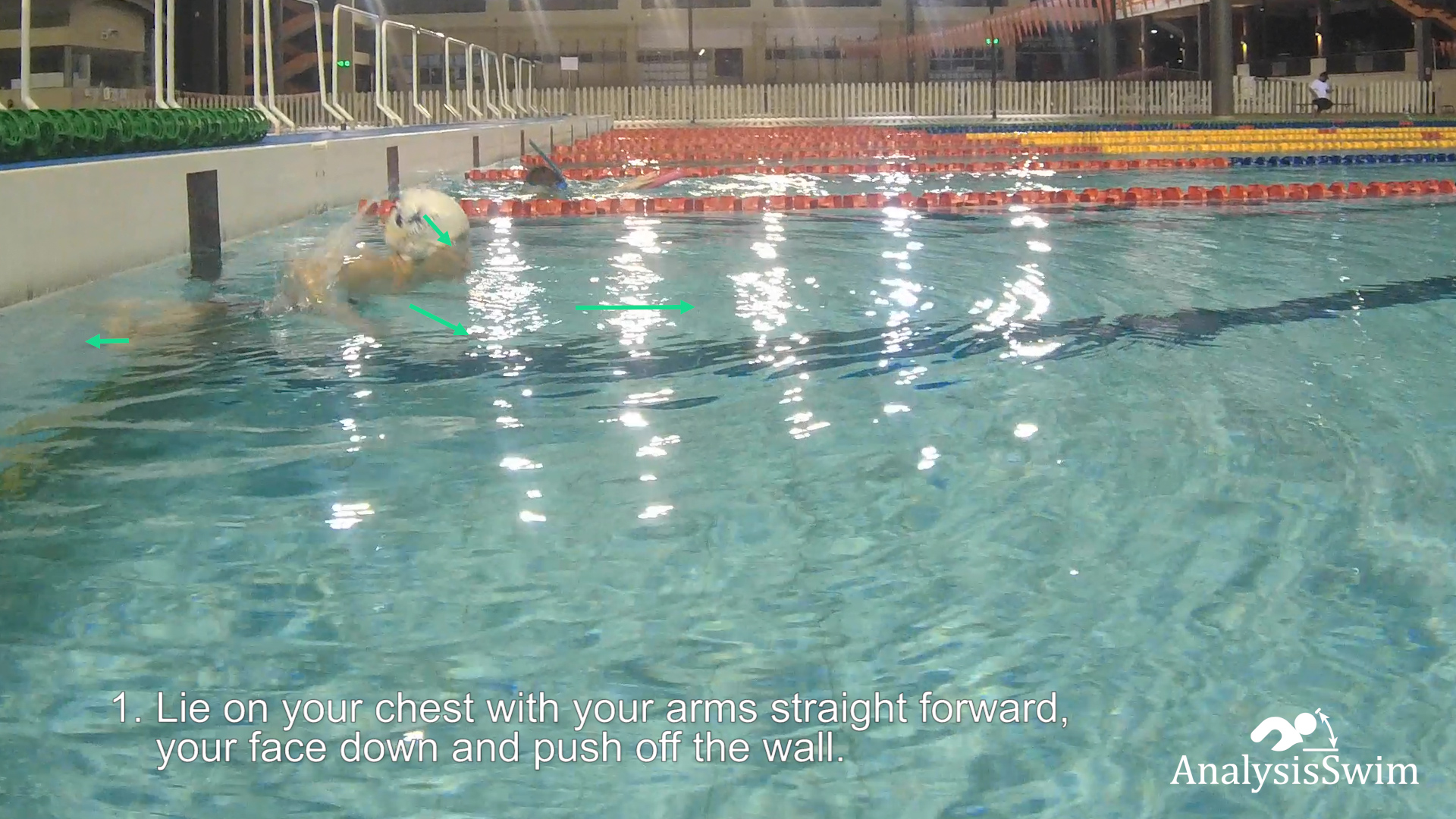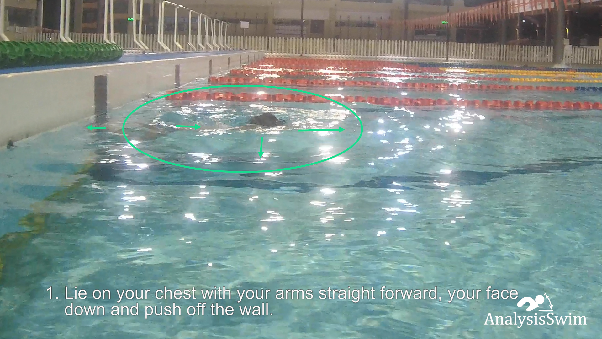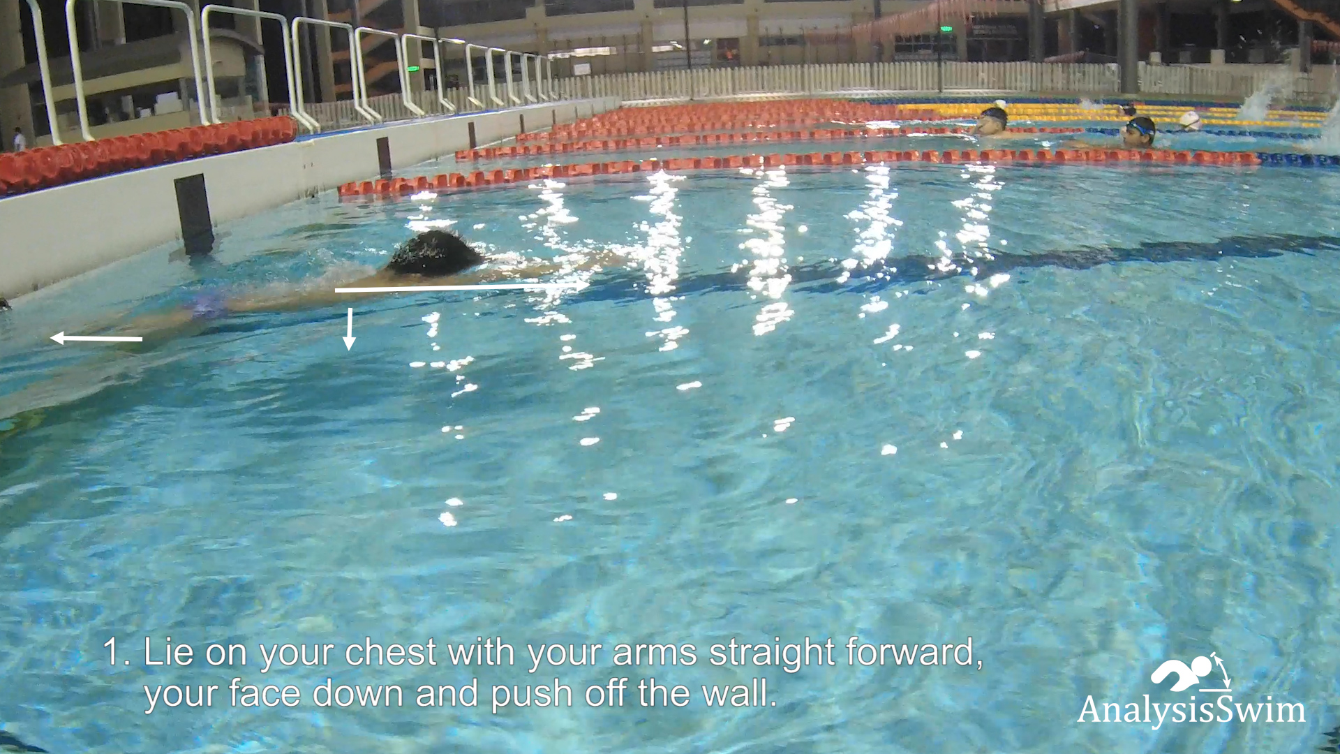 1. Lie on your chest with your arms straight forward, your face down, and push off the wall.