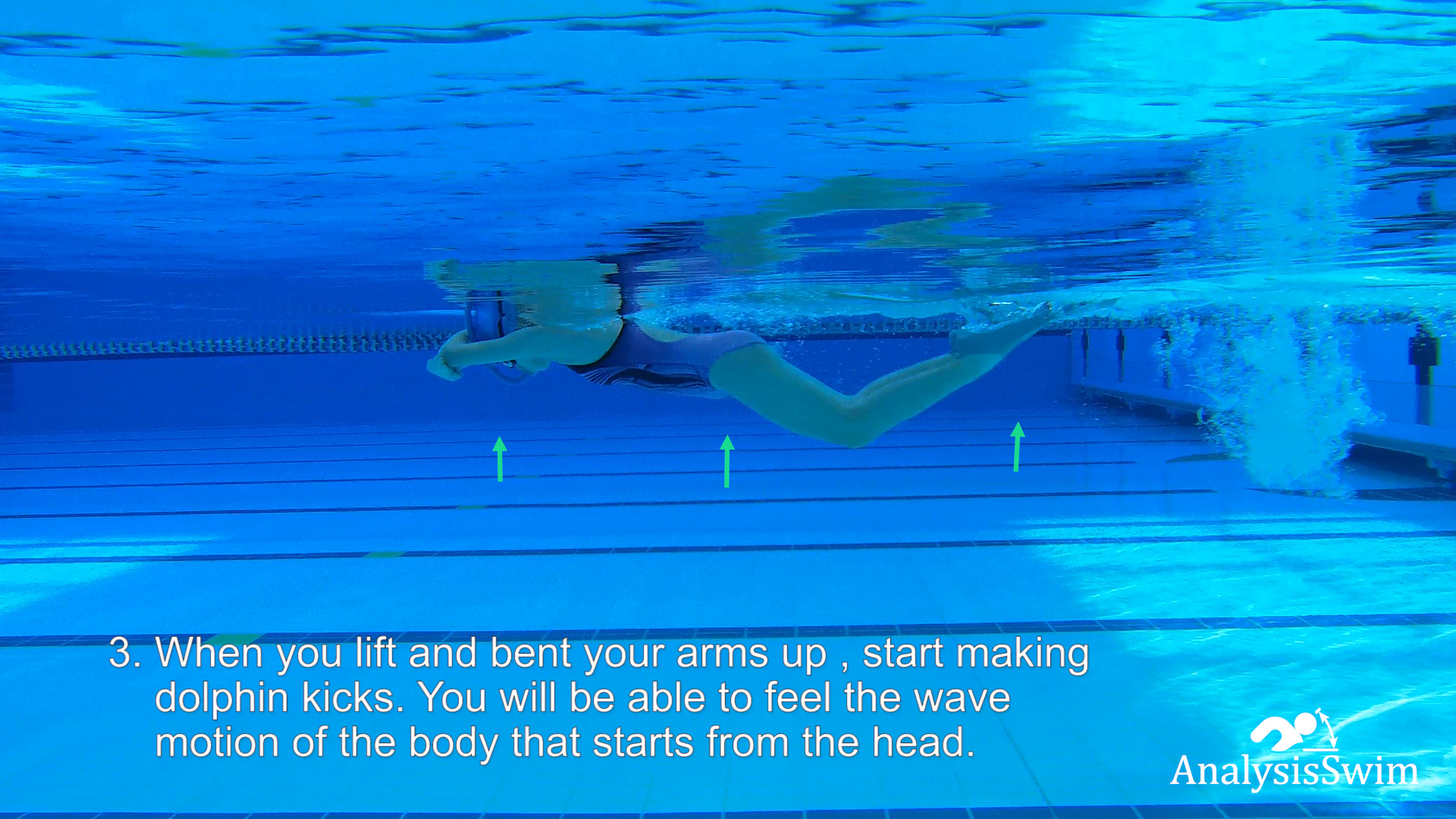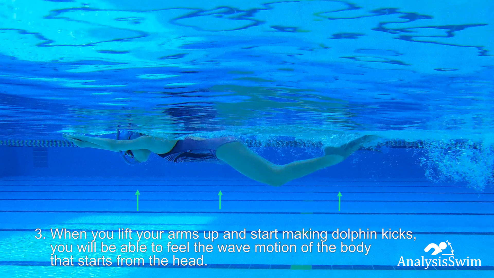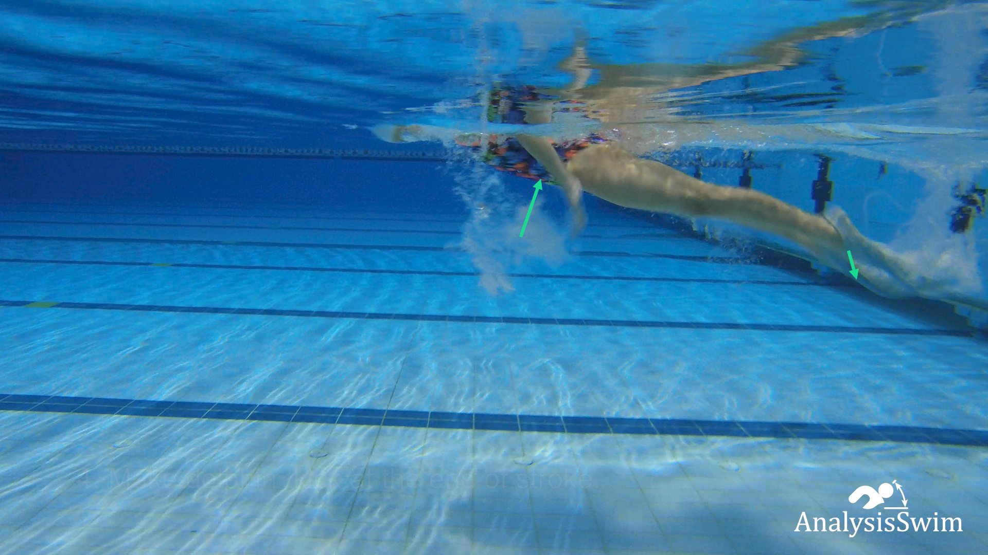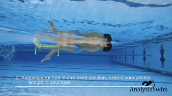 2.The body is underwater at 0.5 - 0.7 meters, during second kick.