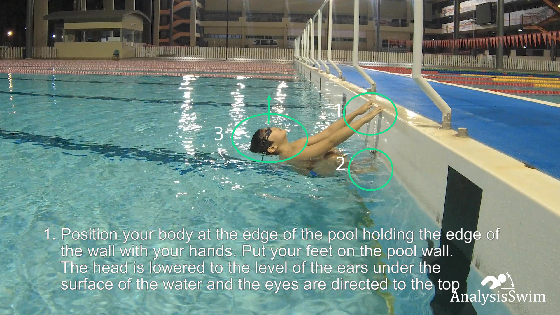 3. Put your arms with straight elbows on the edge of the pool side, hold your head between your arms.