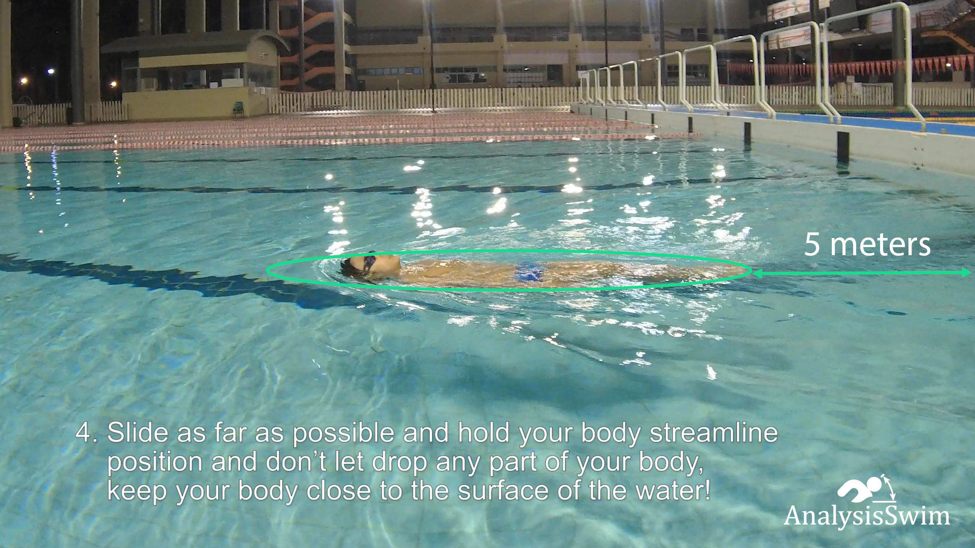 1.The main task of this exercise is to make a good kick with your feet and glide as far as possible in one kick.