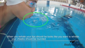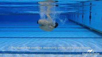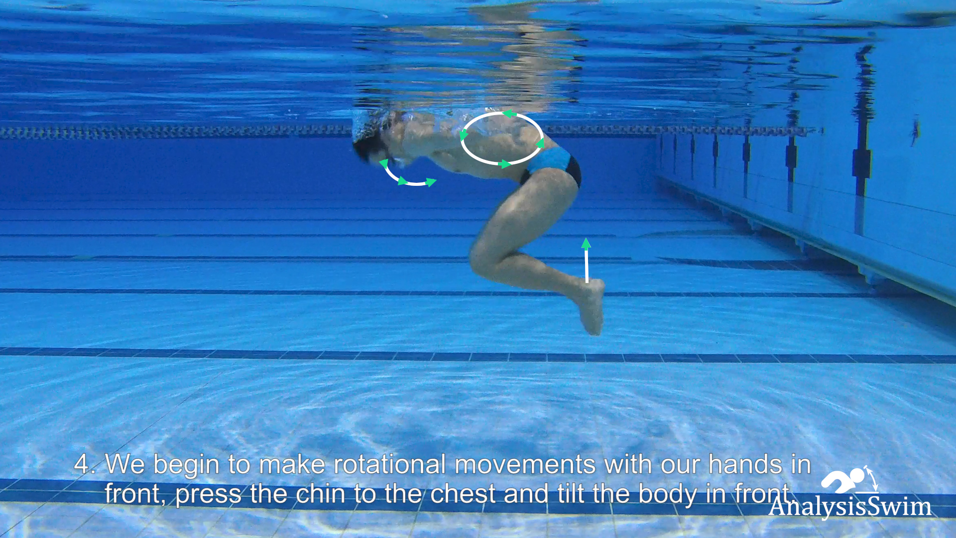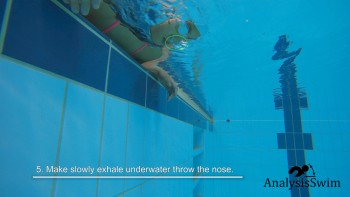 5. We start the rotation of the body forward while keeping the mouth closed and exhaling slowly through the nose. This will help keep water out of the nose.