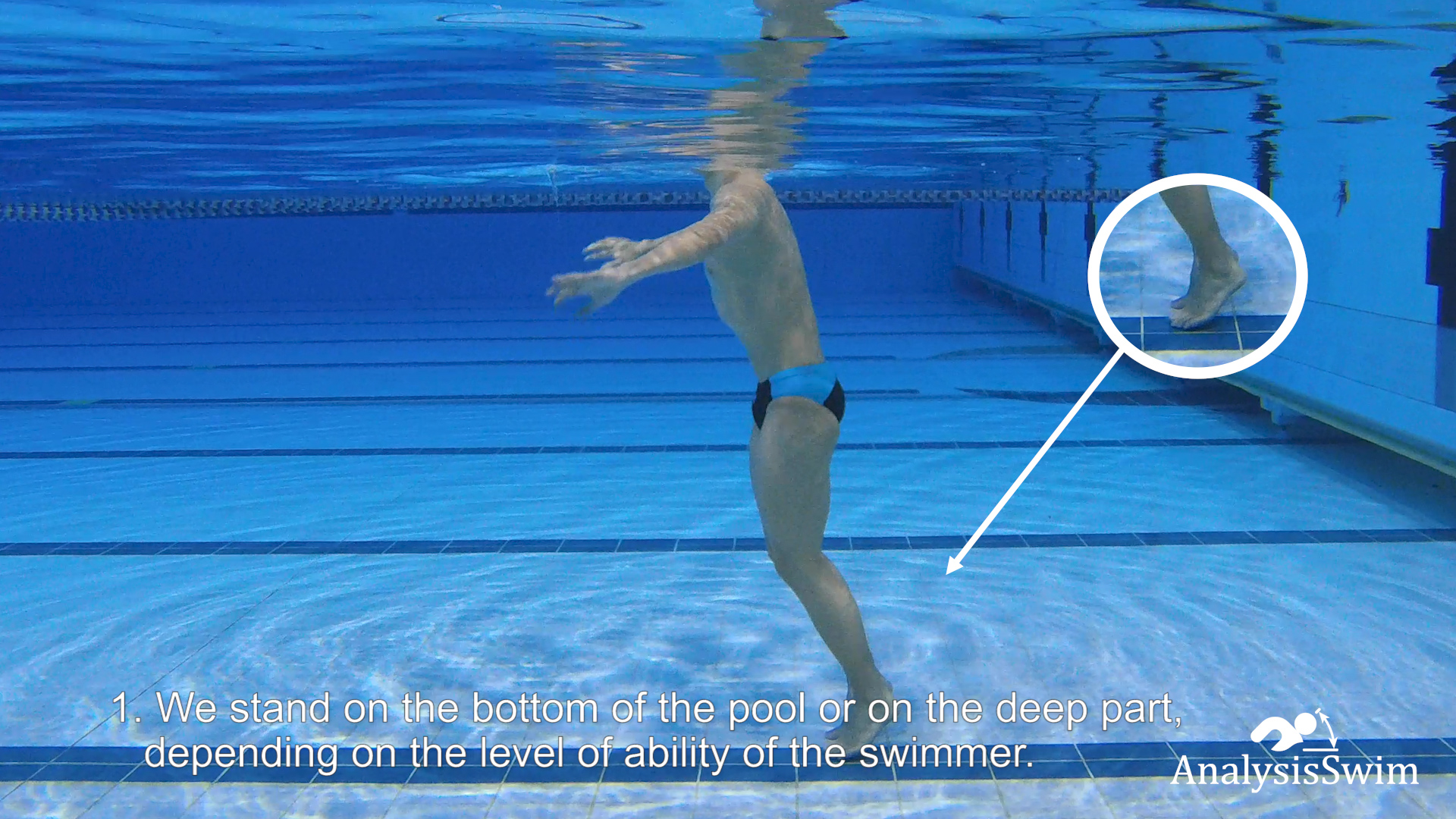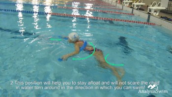 1. We stand on the bottom of the pool or on the deep part, depending on the level of ability of the swimmer.