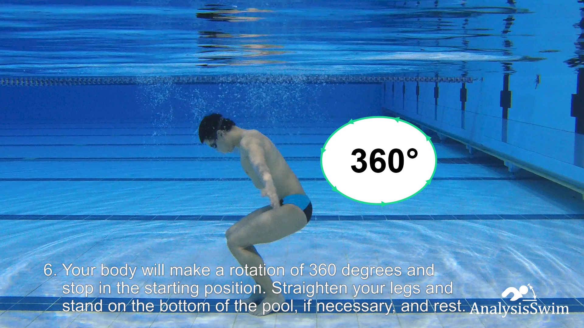 6. Your body will make a rotation of 360 degrees and stop in the starting position. Straighten your legs and stand on the bottom of the pool, if necessary, and rest.