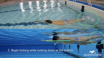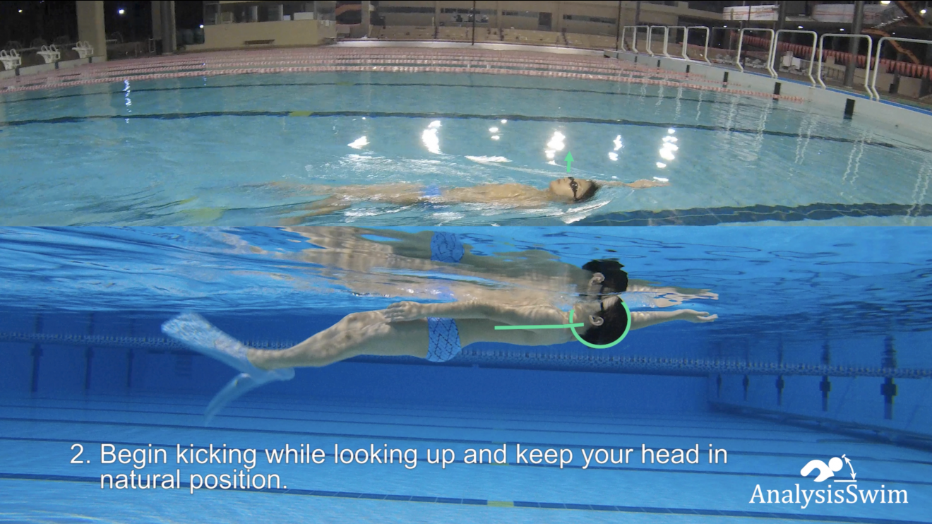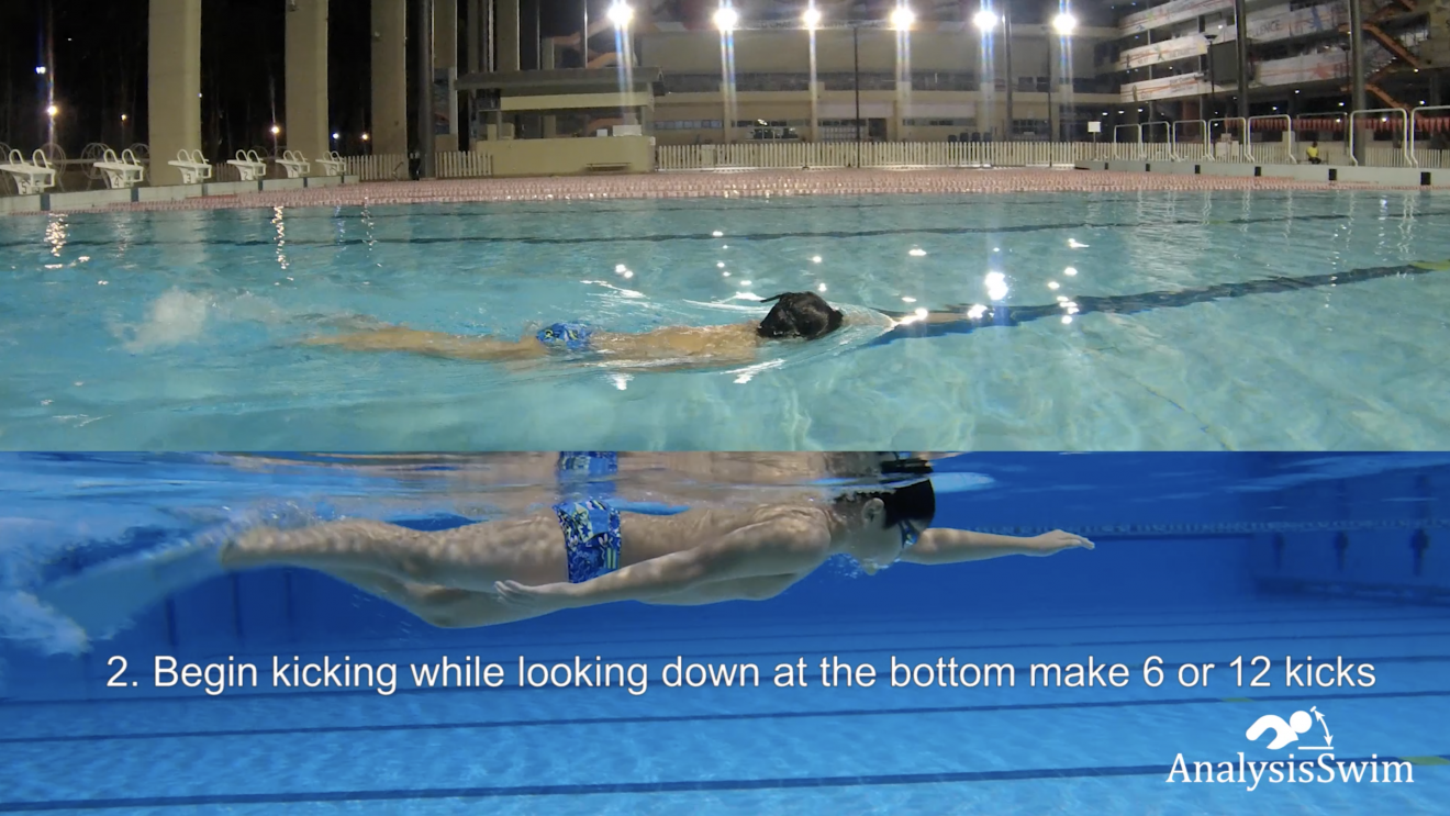 2. Begin kicking while looking down at the bottom make 6 or 12 kicks