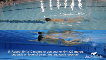 5. Repeat 6~4x10 meters or use snorkel 6~4x25 meters depends on level of swimmers and goals session!