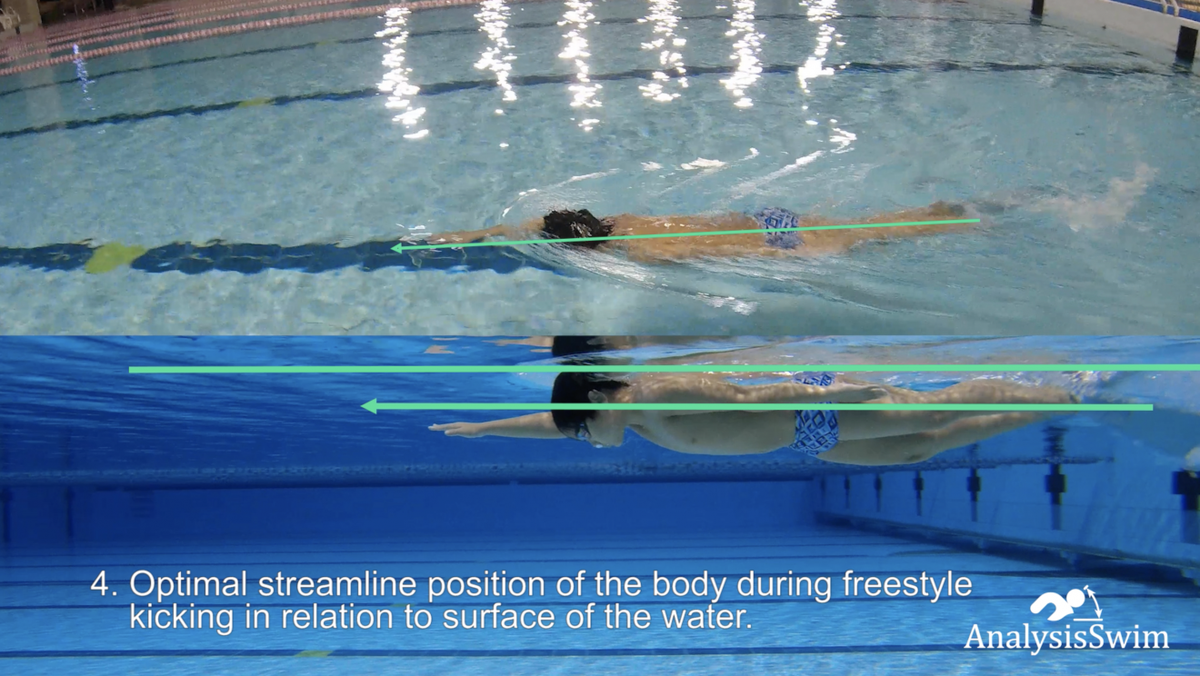 4. Optimal streamline position of the body during freestyle kicking in relation to surface of the water.