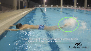 1. Legs can slightly break the water surface during the end of the upkick motion.