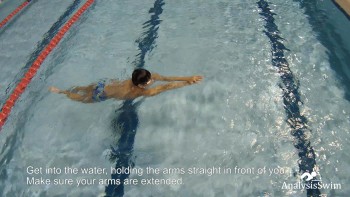 Get into the water, holding the arms straight in front of you.