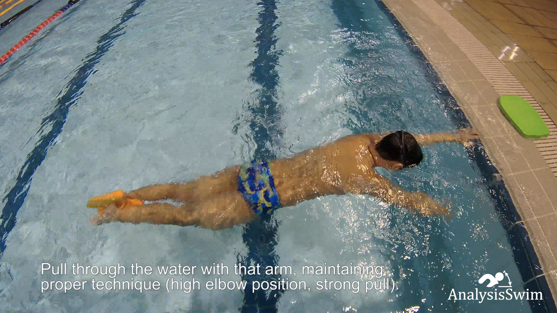 Pull through the water with that arm, maintaining proper technique (high elbow position, strong pull).