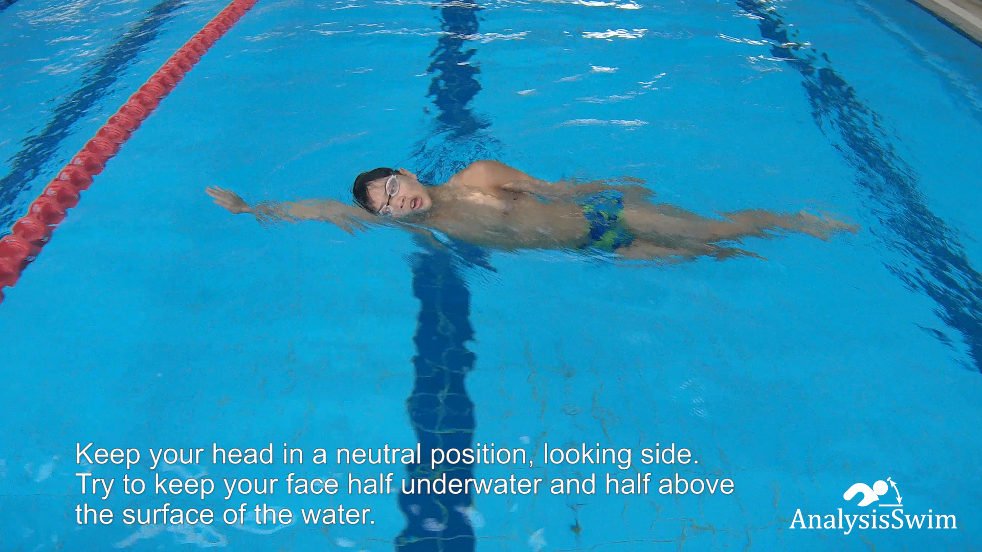 Keep your head in a neutral position, looking straight down into the water. Avoid lifting your head too high, as this can cause your hips to drop and increase resistance.