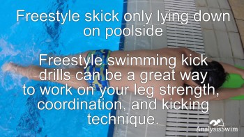Freestyle swimming kick drills can be a great way to work on your leg strength, coordination, and kicking technique. You can practice freestyle swimming kick while lying down on the poolside with your legs in the water using the following steps: