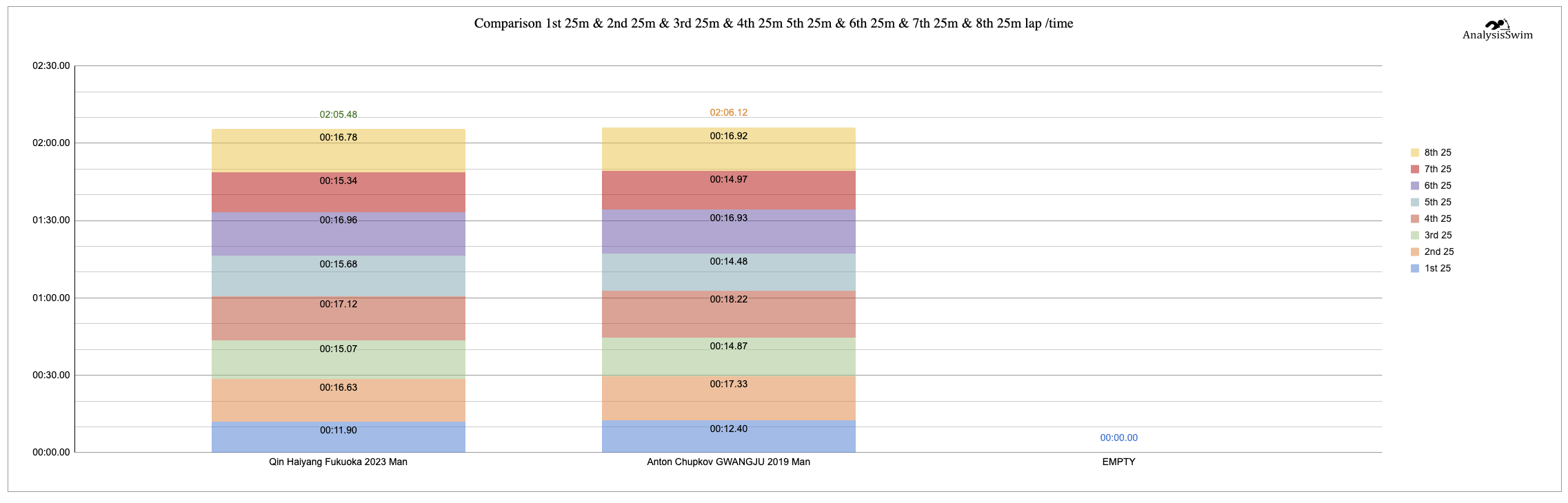 Comparison 1st 25m & 2nd 25m & 3rd 25m & 4th 25m 5th 25m & 6th 25m & 7th 25m & 8th 25m lap /time